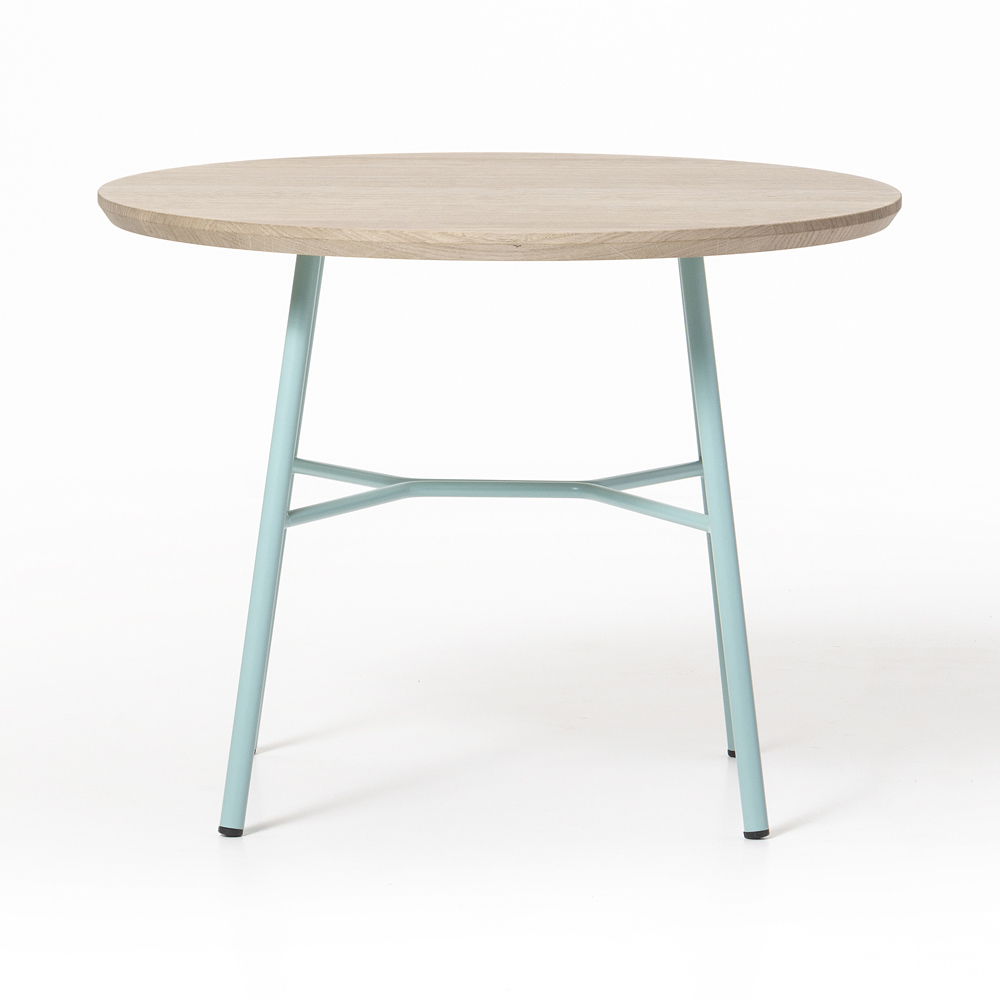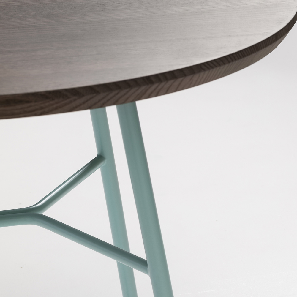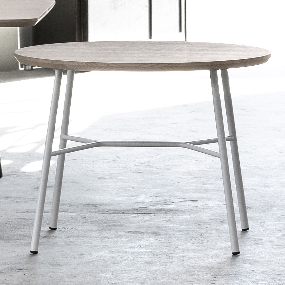 Kulatý konferenční stolek z masivního dřeva a kovu Made in Italy.