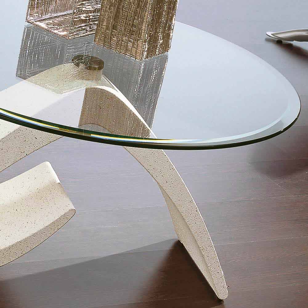Konferenční stolek vyrobený v Itálii s kulatou deskou ze zkoseného průhledného skla a podnoží z minerálního mramoru , materiálu získaného smícháním mramorových prášků. Exkluzivní a elegantní design charakterizuje tento kus nábytku se silnou vytříbenou osobností , ideální pro vybavení každého domácího obytného prostoru charakterem a přináší s sebou avantgardní nádech . Díky použití vysoce kvalitních surovin a zpracování 100% Made in Italy se zrodil vzácný a hodnotný konferenční stolek, který vyniká svou elegancí a kreativitou ve tvarech. Podstavec z minerálního mramoru nabízí konferenčnímu stolku vynikající pevnost a robustnost a zároveň dodává estetice silný moderní styl. Jeho zvláštní postava charakterizovaná jednoduchými geometrickými liniemi vytváří nádhernou harmonii s měkkým tvarem skleněné desky a dodává designu produktu exkluzivní estetický smysl.