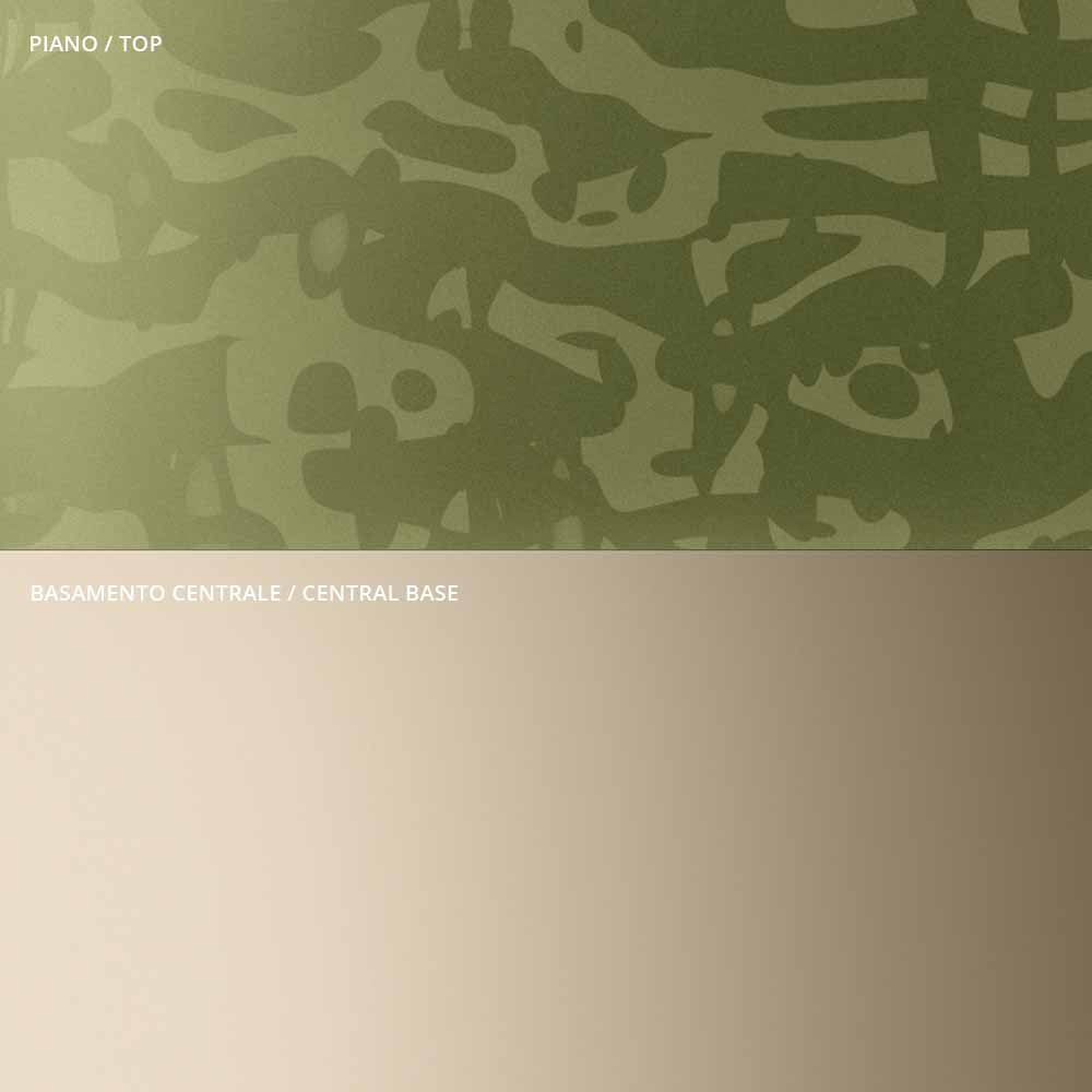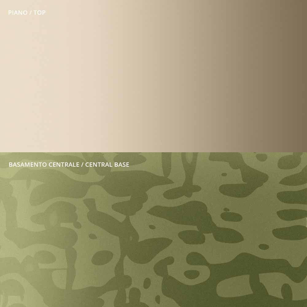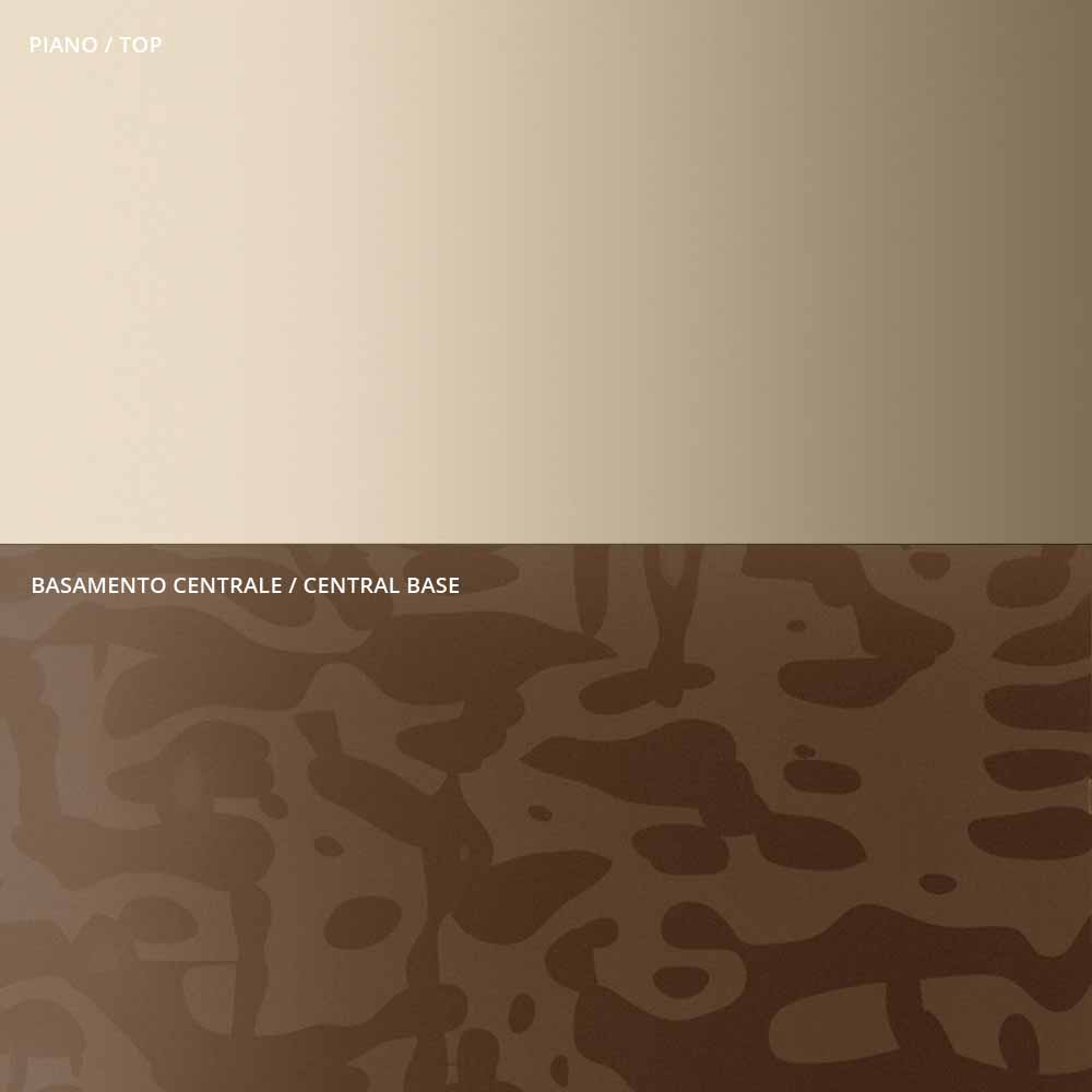 podnoží z taveného skla Made in Italy. Centrální představec je vždy kovový s metalickou champagne úpravou.