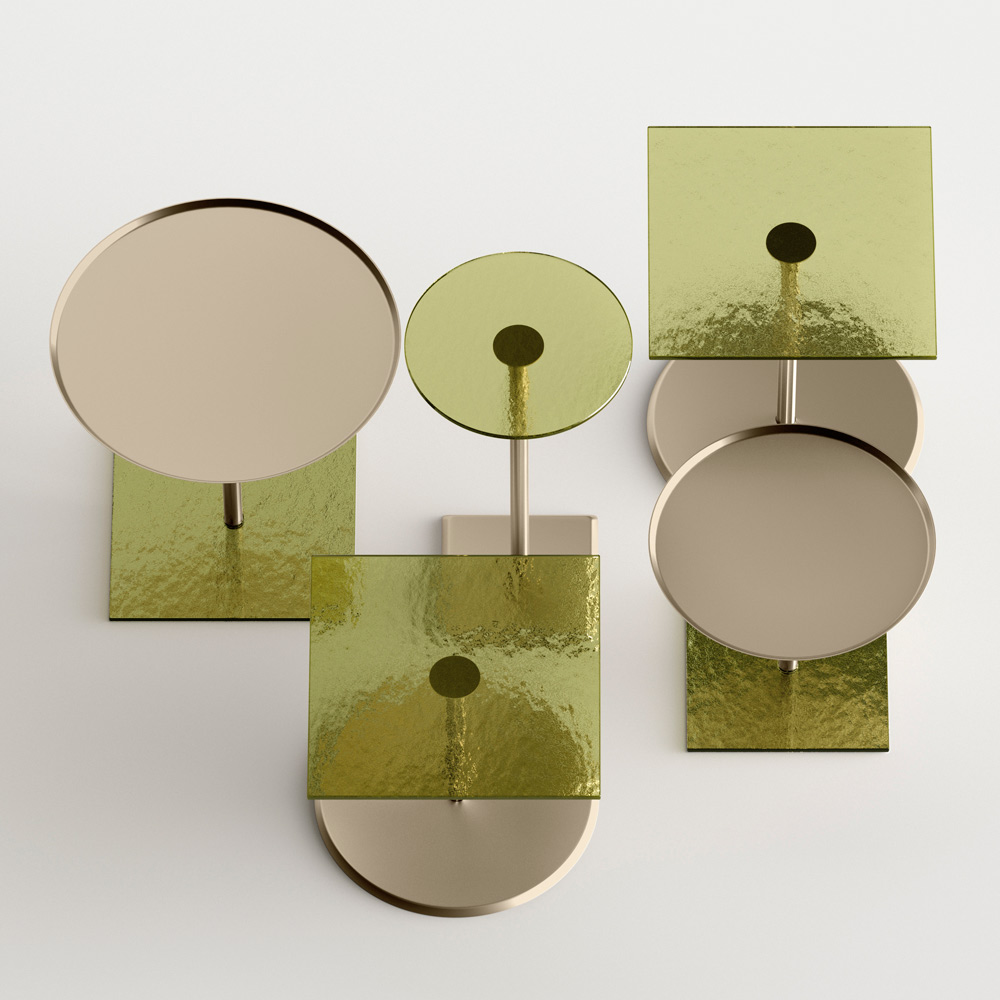 originalitou a elegancí tvarů desky a podstavce, které zvýrazňují detail centrálního kovového stonku, pečlivě soustruženého v tloušťce a povrchově zakončeného. Konferenční stolek, samostatně nebo ve skupině, se přizpůsobí, aby zařídil jakoukoli místnost v domácnosti a smlouvu s