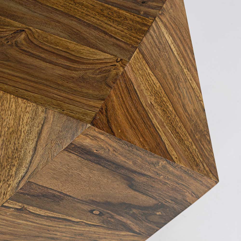 Tento konferenční stolek s polygonálním designem je celý vyroben z jemného sheeshamového dřeva s povrchovou úpravou polyuretanovým lakem.
