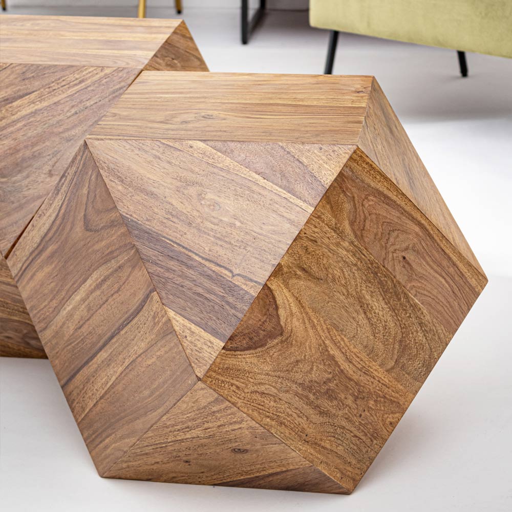 Konferenční stolek do obývacího pokoje s polygonálním designem ze sheeshamového dřeva.