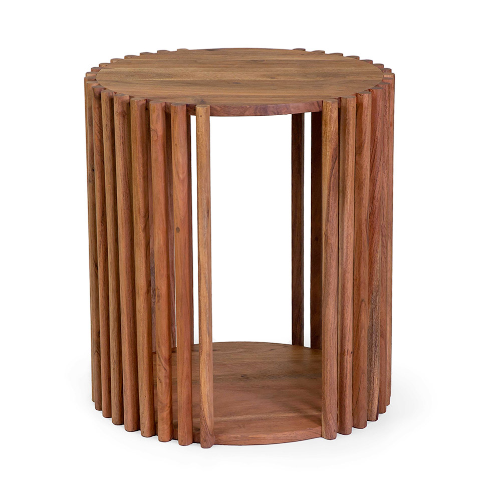 Konstrukce vertikálních lamel vytváří dynamický a lehký vizuální efekt, který je ideální pro dodání nádechu originality každému prostředí. Díky kulatému a kompaktnímu tvaru je ideální jako konferenční stolek , noční stolek nebo doplněk vybavení útulných zákoutí.