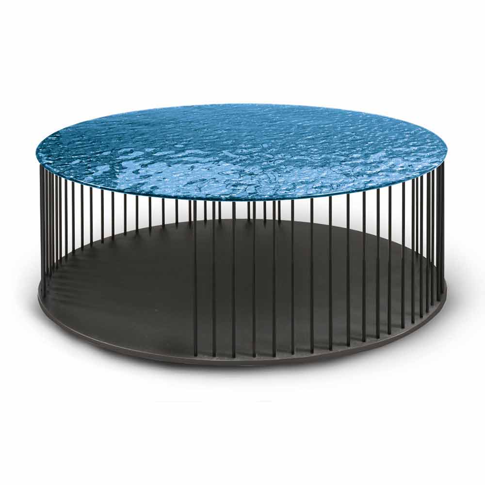 Konferenční stolek z kovaného křišťálu a černého kovu Made in Italy.