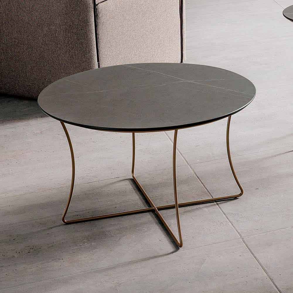 Konferenční stolek z hpl a kovu s bronzovou povrchovou úpravou Made in Italy, drahý.