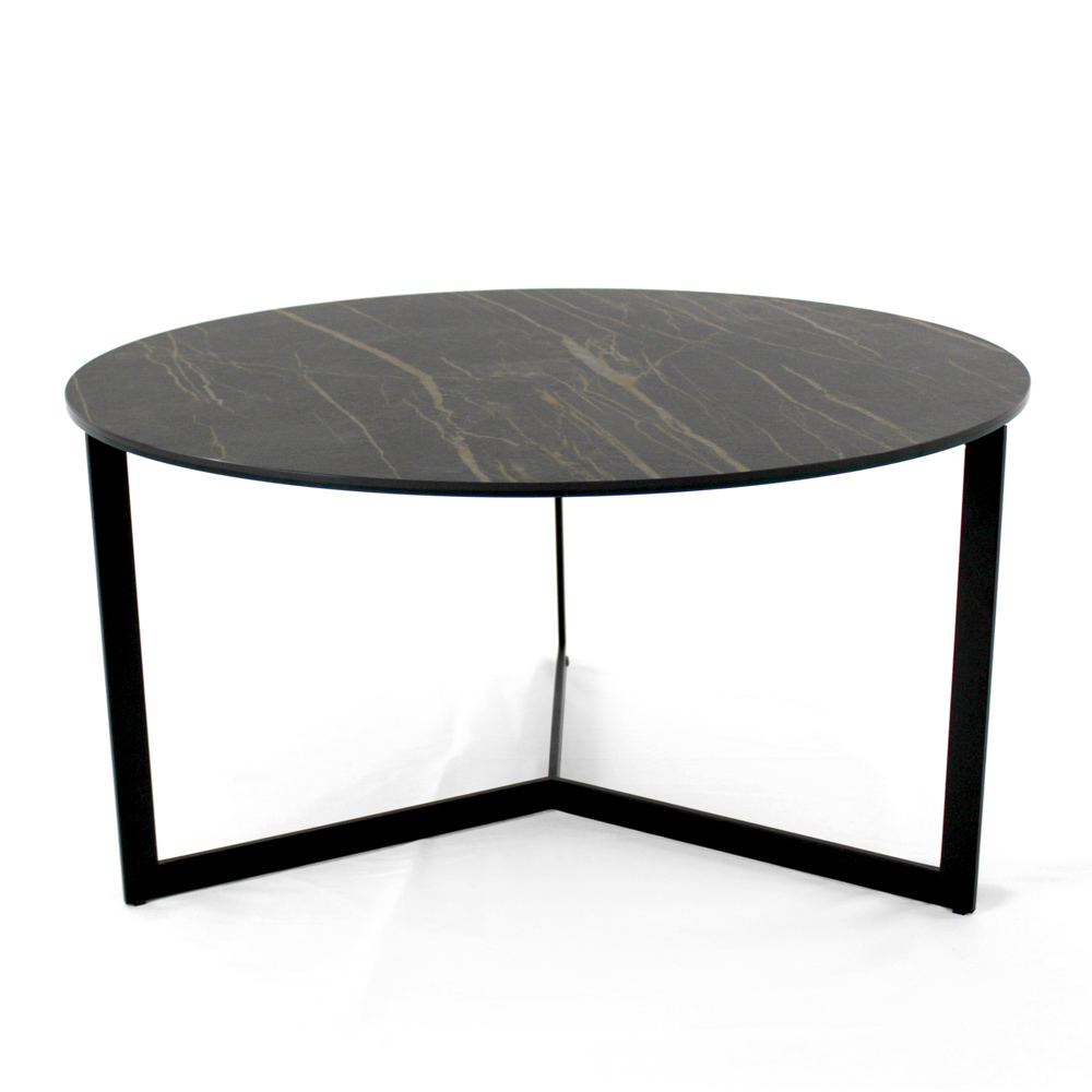 Kulatý konferenční stolek s podstavou z lakované oceli a vrchní deskou z grès porcelánové kameniny