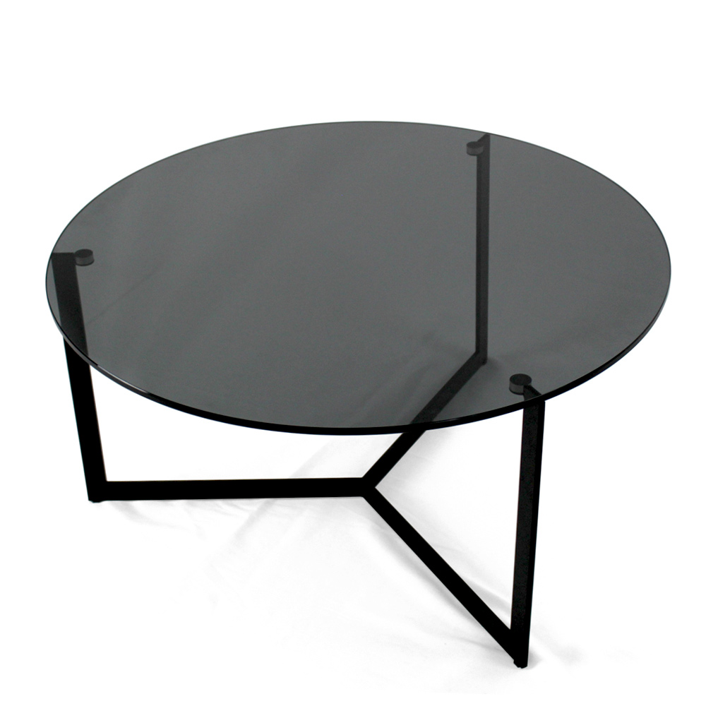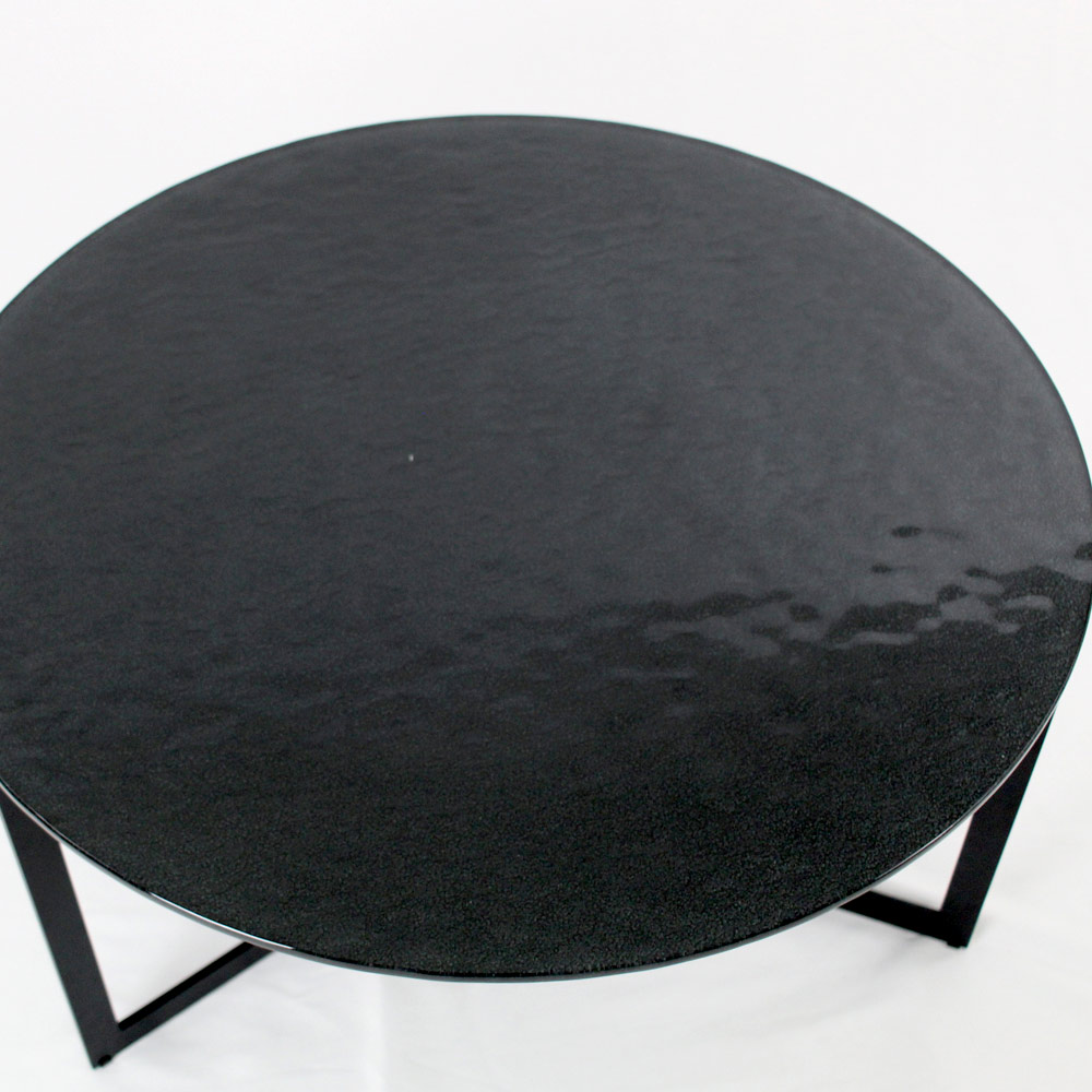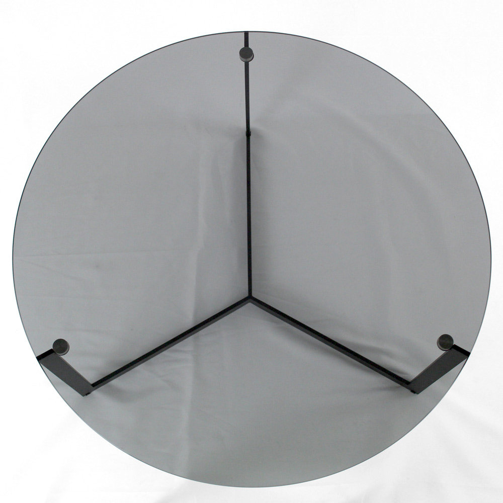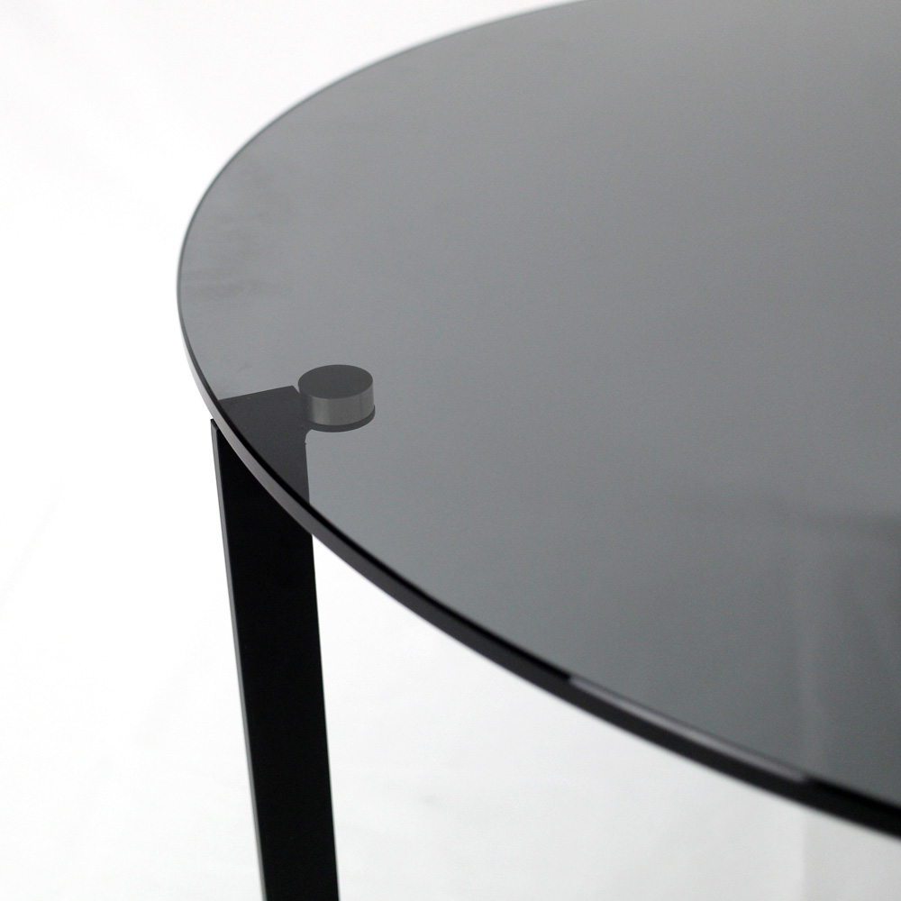Kulatý konferenční stolek s podnoží z lakované oceli a skleněnou deskou.