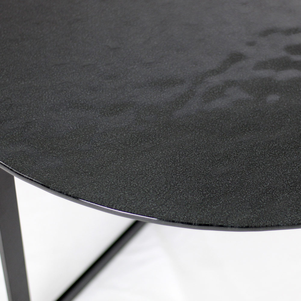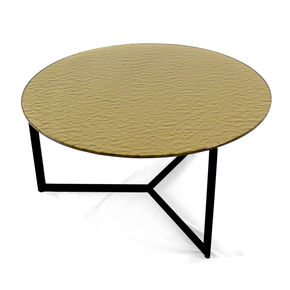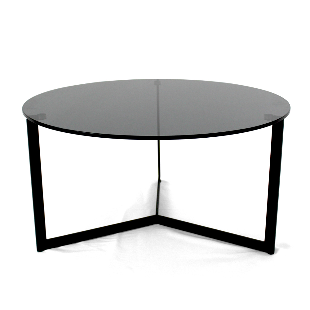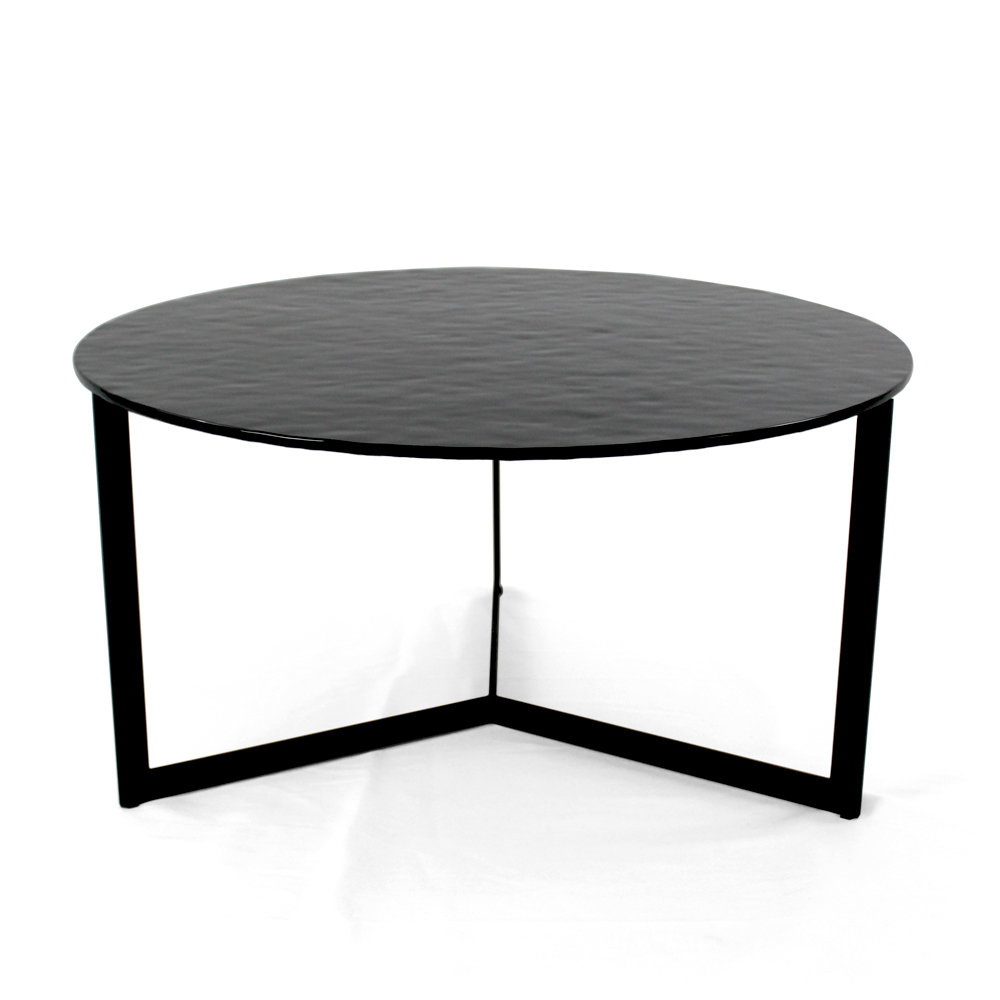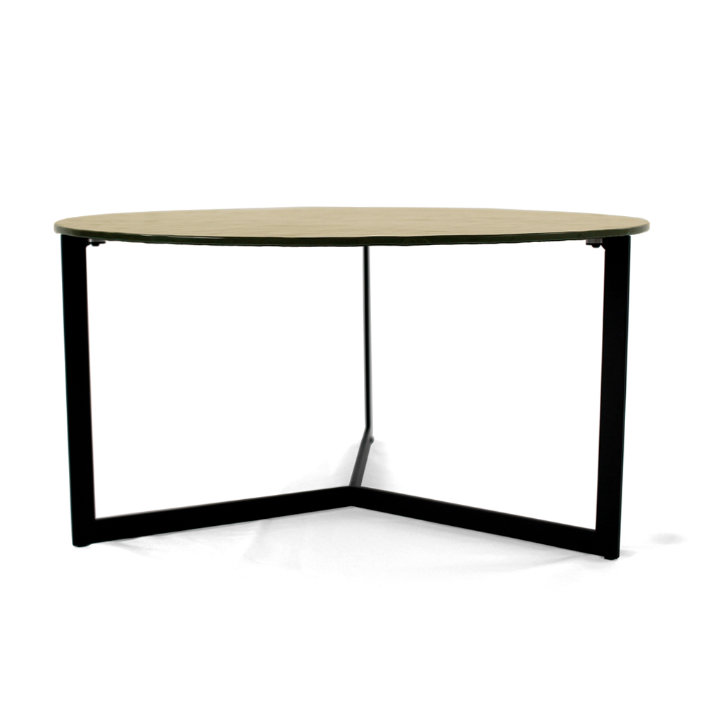 Kulatý konferenční stolek s podnoží z lakované oceli a skleněnou deskou.