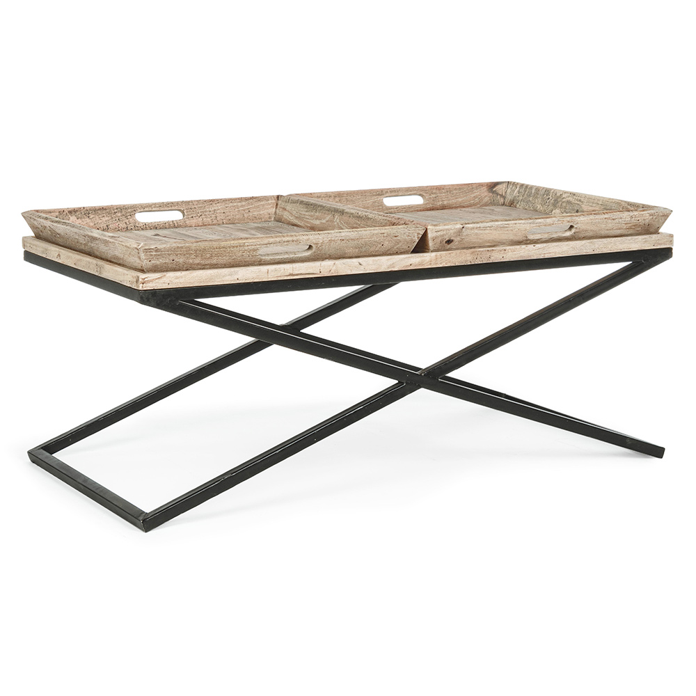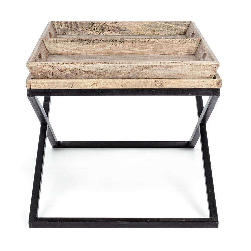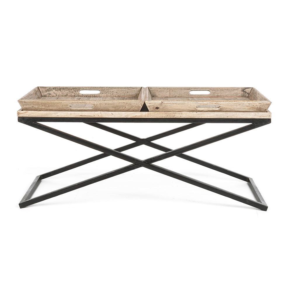 Konferenční stolek z oceli s podnosem v designu mangového dřeva - Cesira