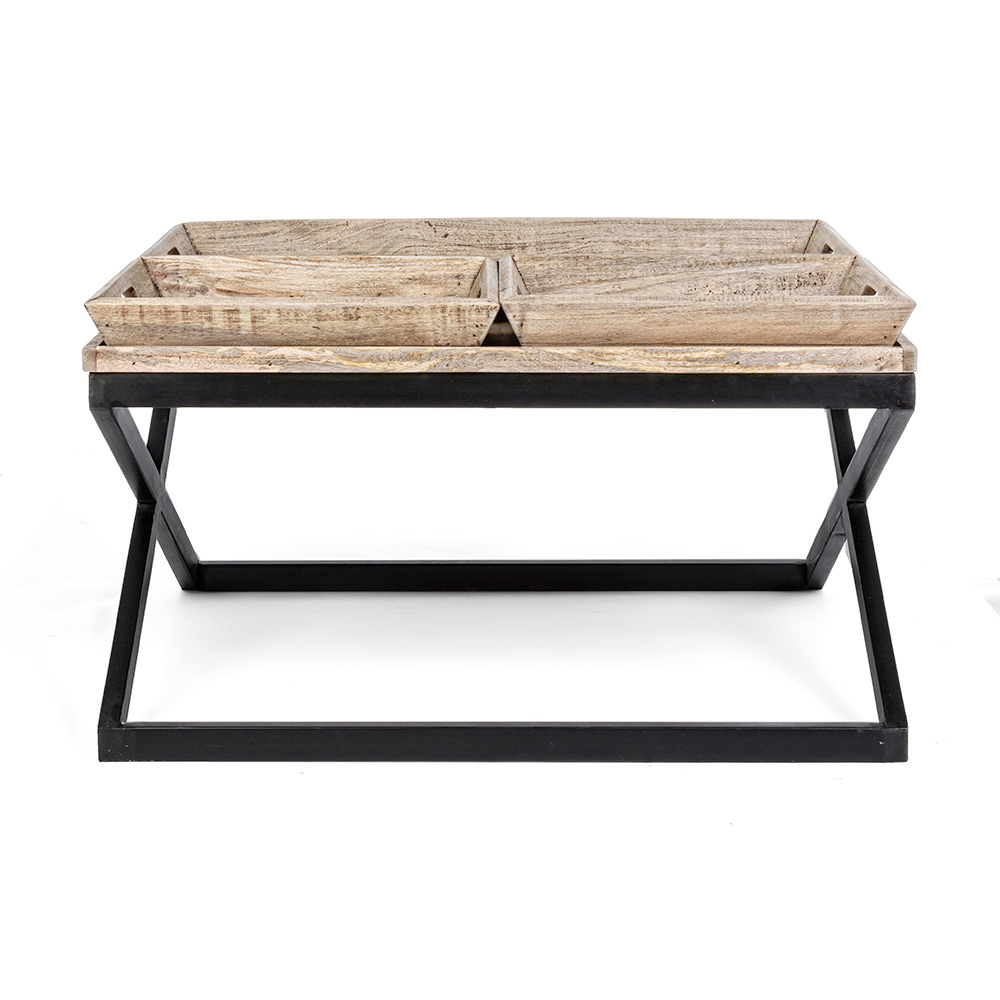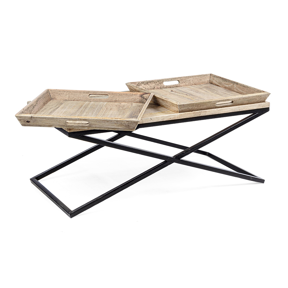 Konferenční stolek z oceli a mangového dřeva s podnosem, 3 velikosti.