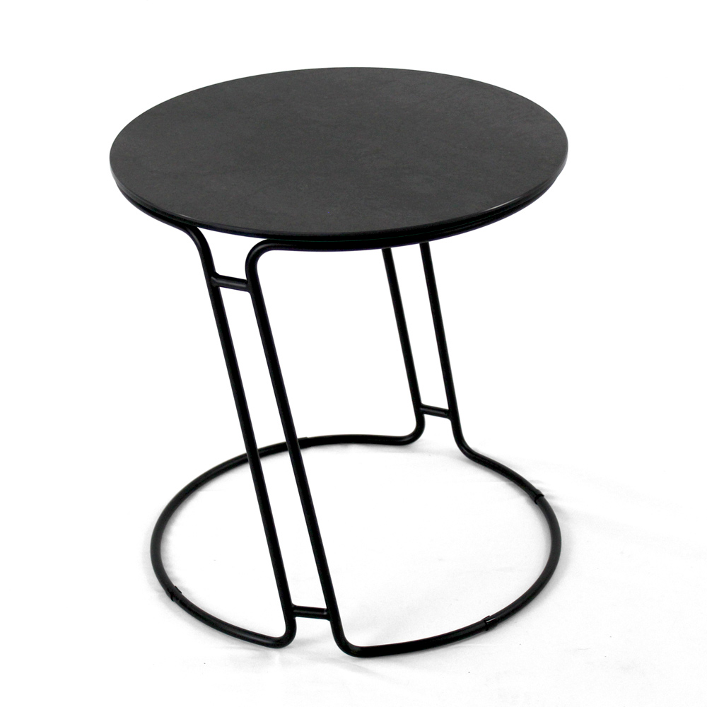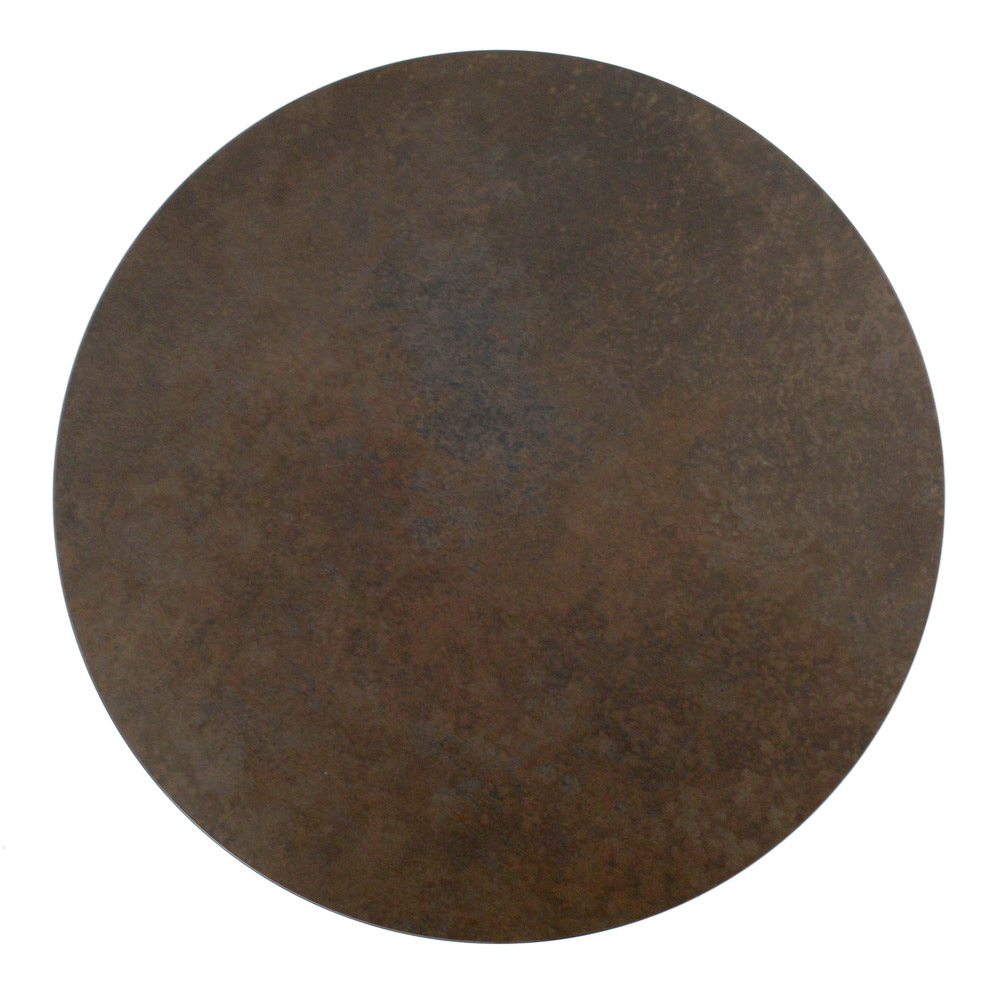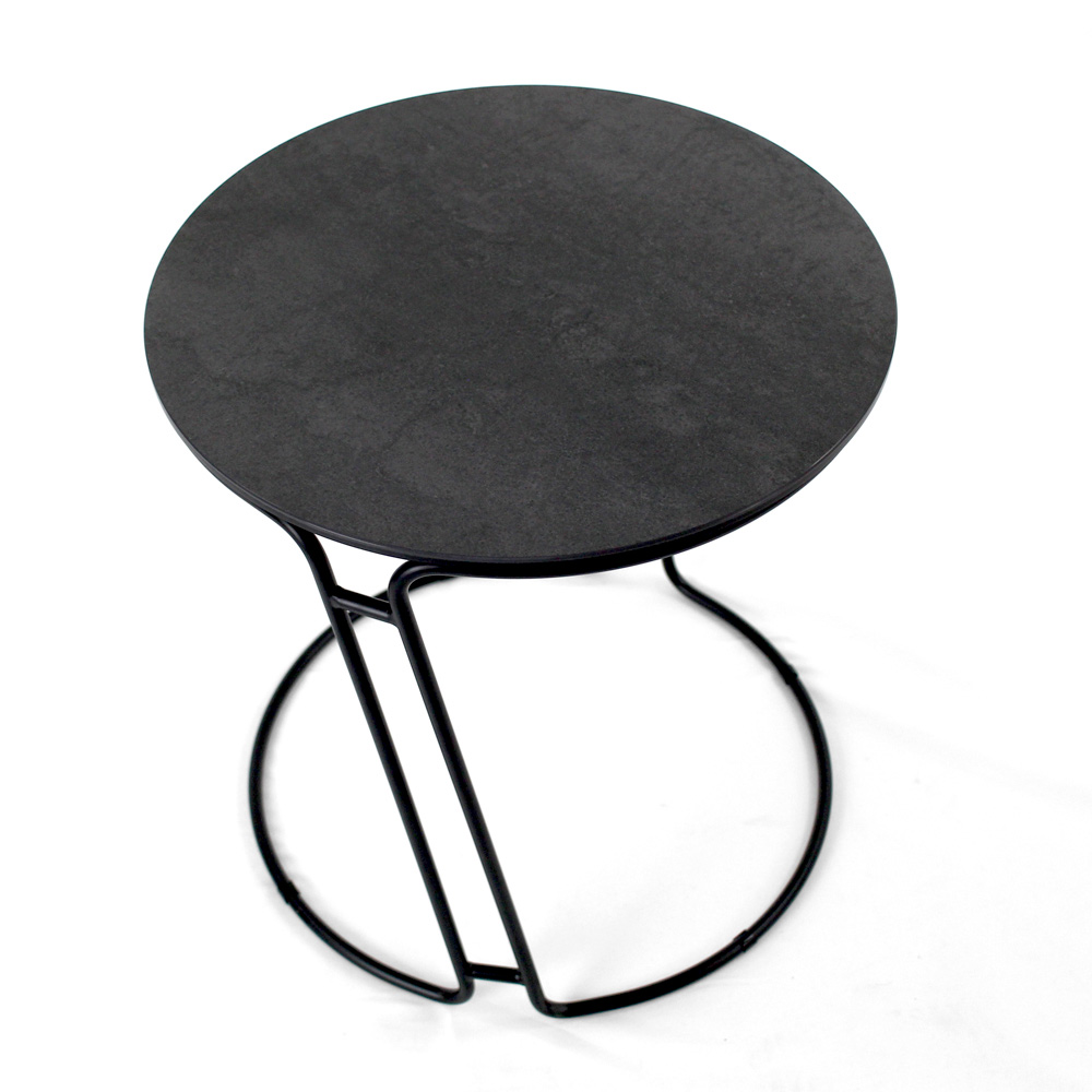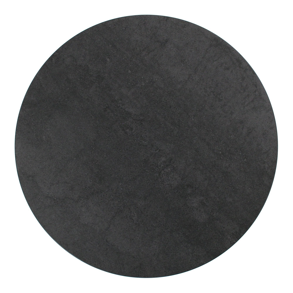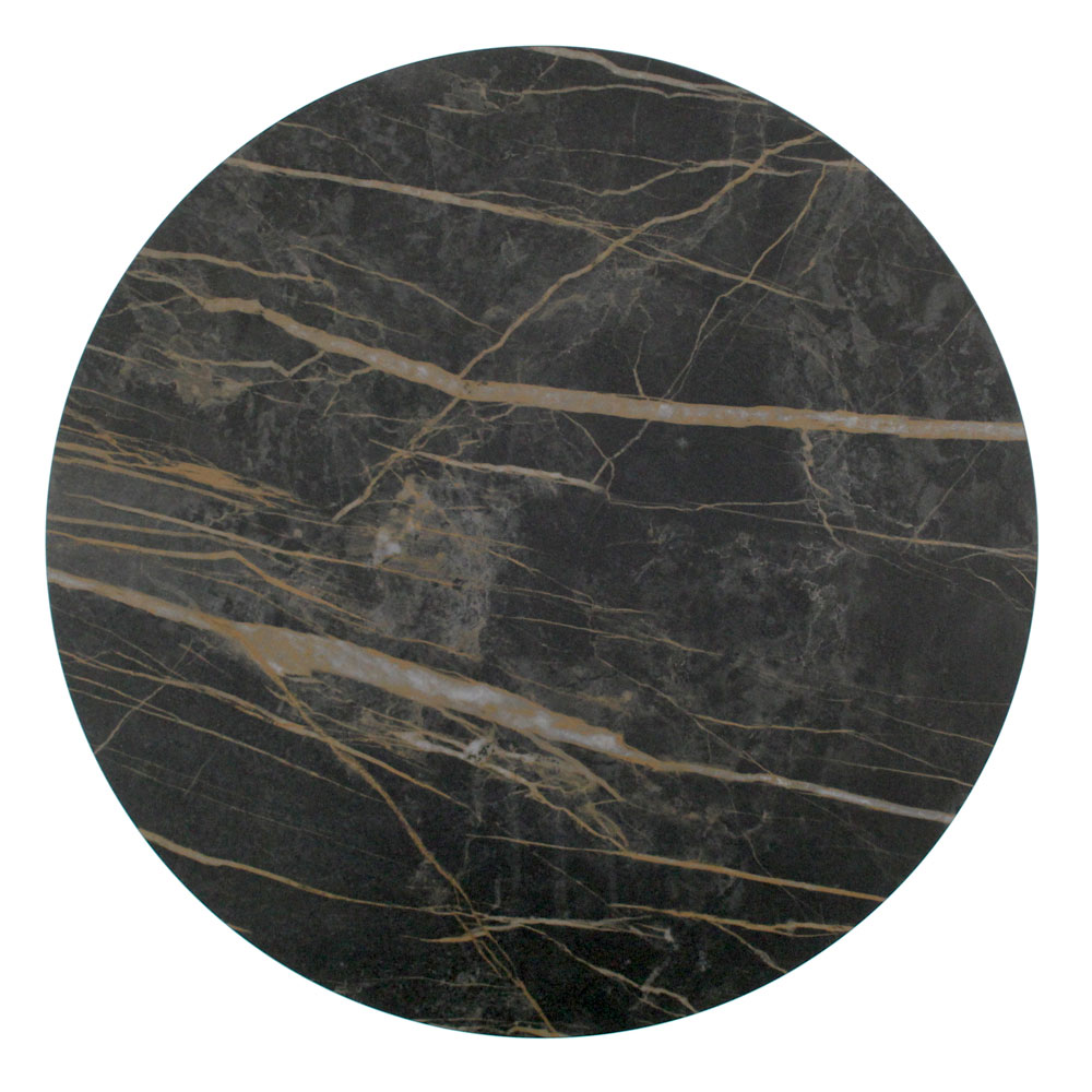 Kulatý konferenční stolek s lakovanou ocelovou základnou a horní deska z porcelánové kameniny.