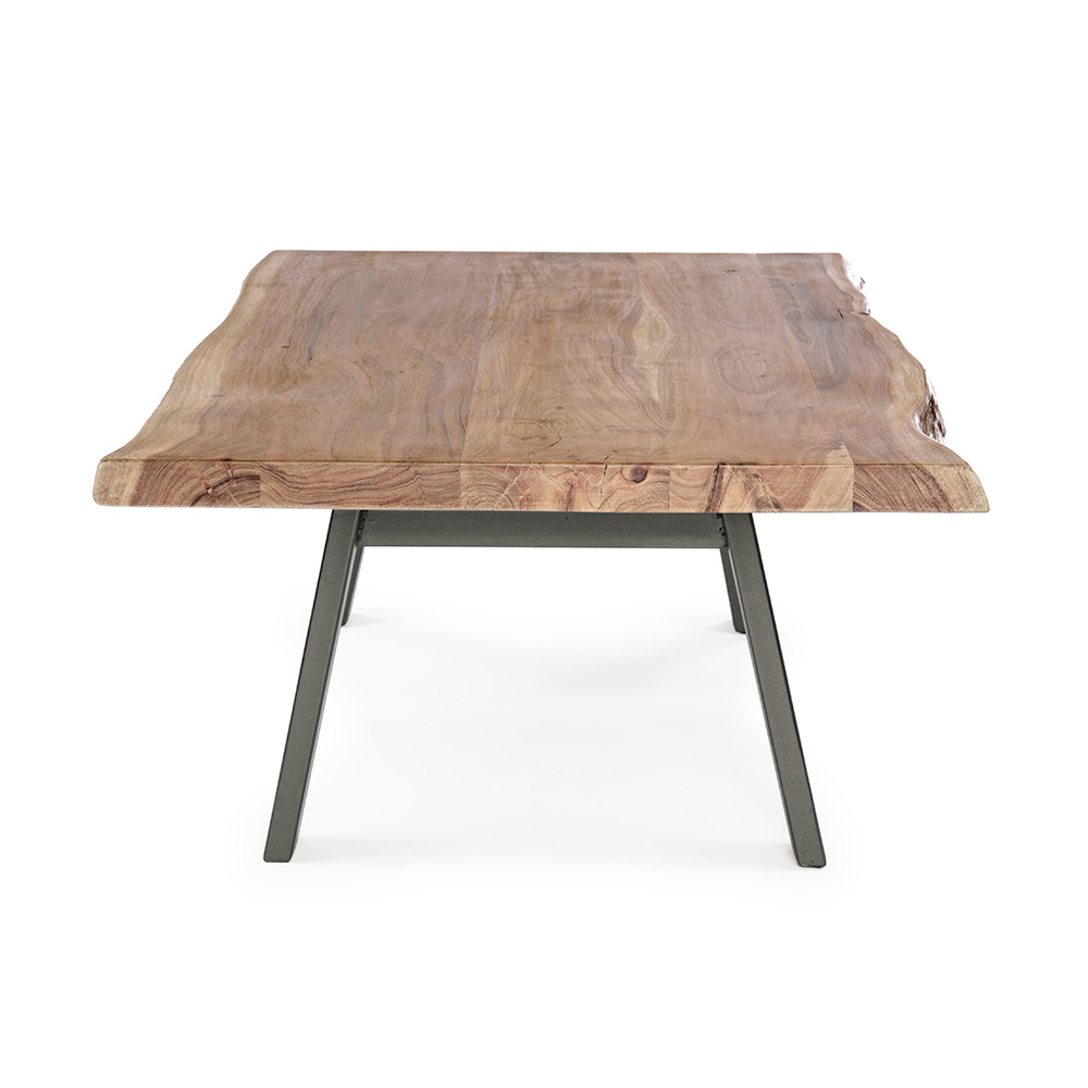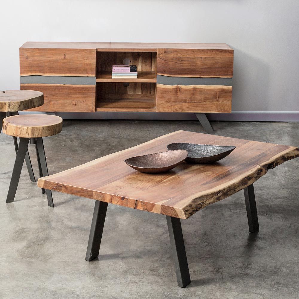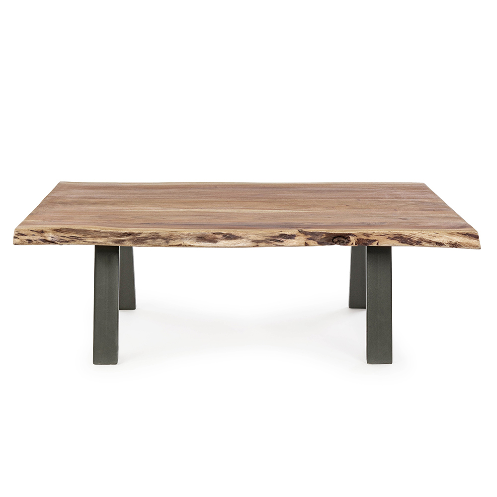 Konferenční stolek z ručně vyrobeného akáciového dřeva a ocelových nohou.