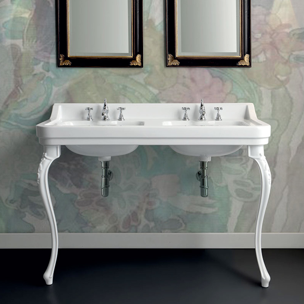 Umyvadlo do konzoly s dvojitým umyvadlem z lesklé bílé keramiky vyrobené řemeslnou výrobou 100% Made in Italy . Klasické a jednoduché tvary načrtávají jemnou postavu kusu nábytku určeného k obohacení prostoru koupelny pečlivým hledáním prvků se silnou vytříbenou osobností . Jeho estetika připomíná styl minulosti, který se perfektně hodí jak do klasických prostor, ve kterých vytváří nádhernou harmonii stylů, tak do prostředí s moderním vybavením, ve kterém vytváří neobvyklý kontrast pro kreativní a originální .