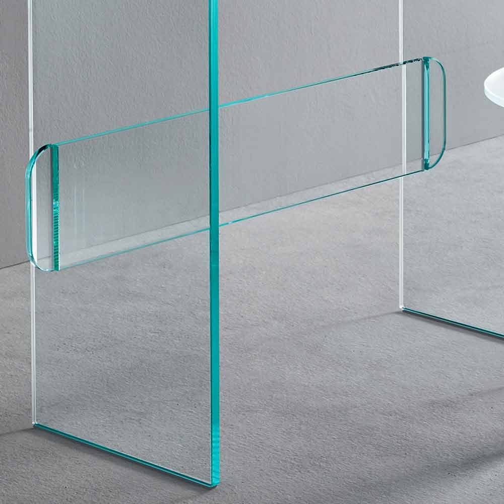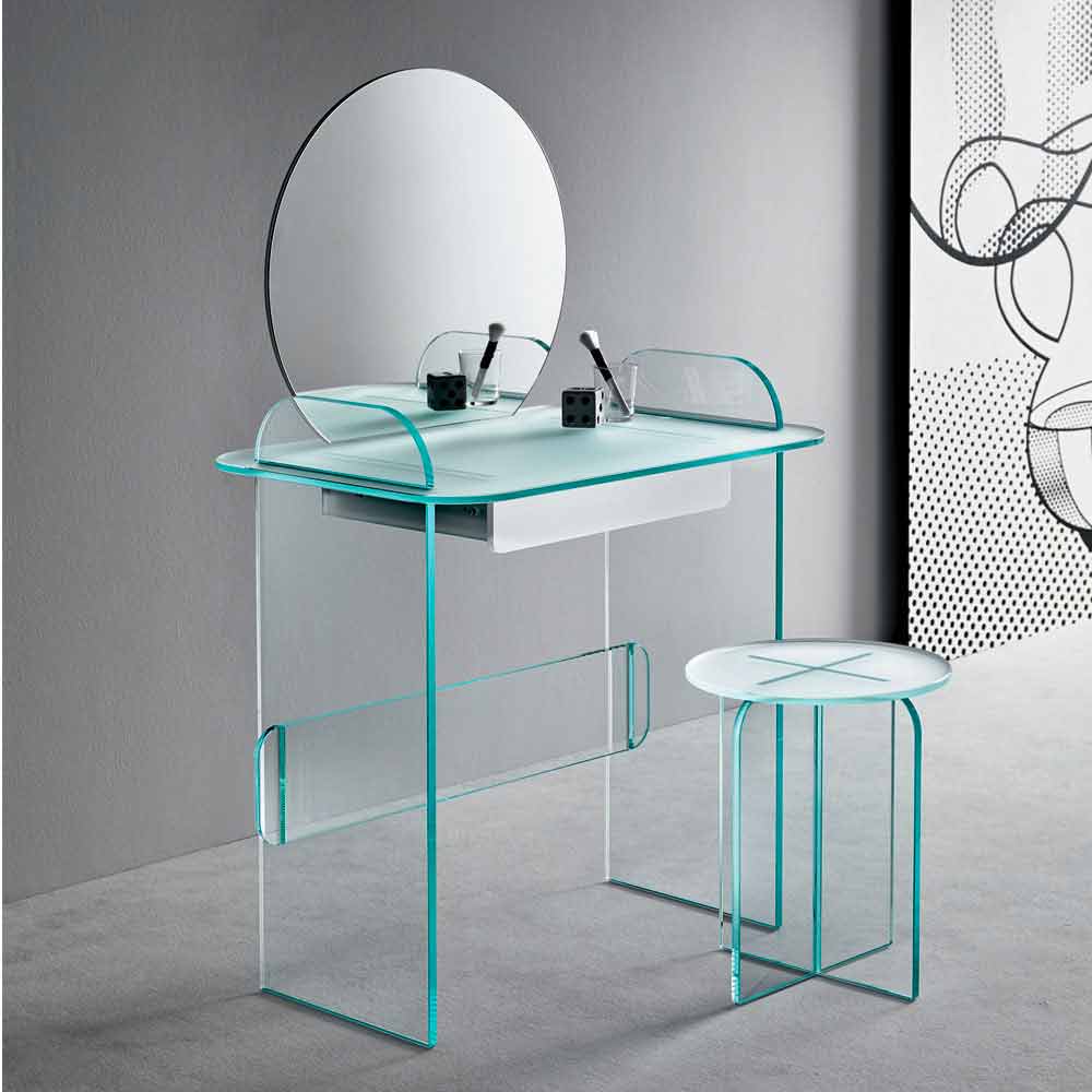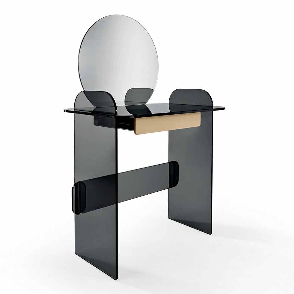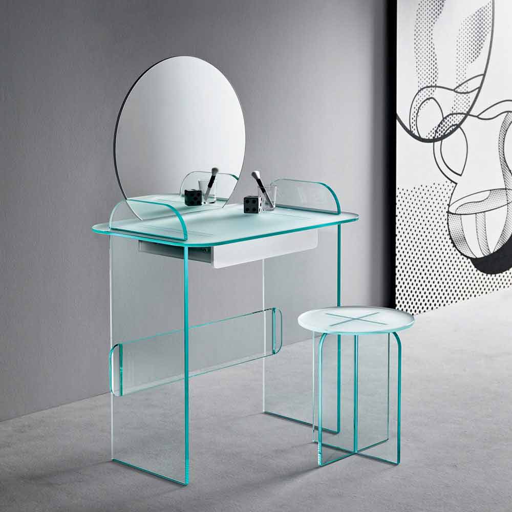 Toaletní stolek se zrcadlem a zásuvkou v extra čirém, kouřovém nebo zeleném skle vyrobené v Itálii.