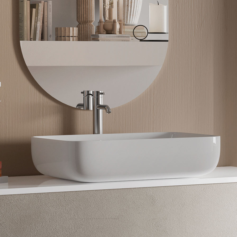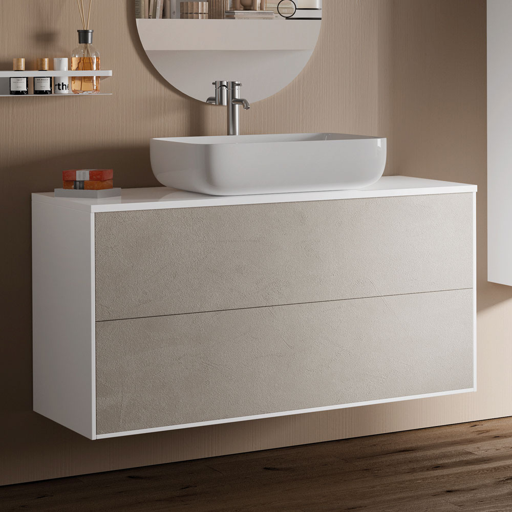 Koupelnová kompozice se základnou, zrcadlem a keramickým umyvadlem Made in Italy