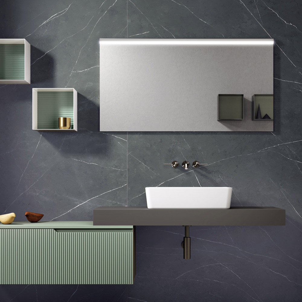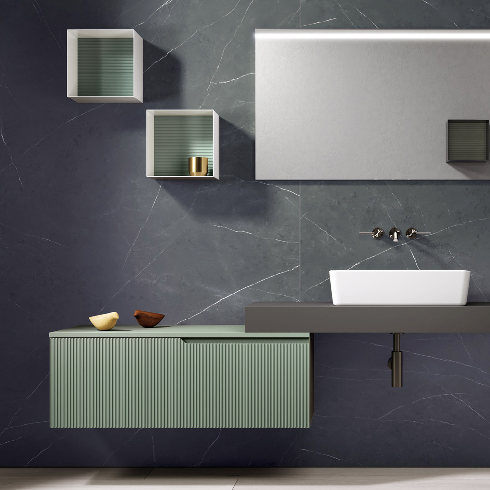Kompozice koupelny v žebrované šalvějově zelené MDF Made in Italy