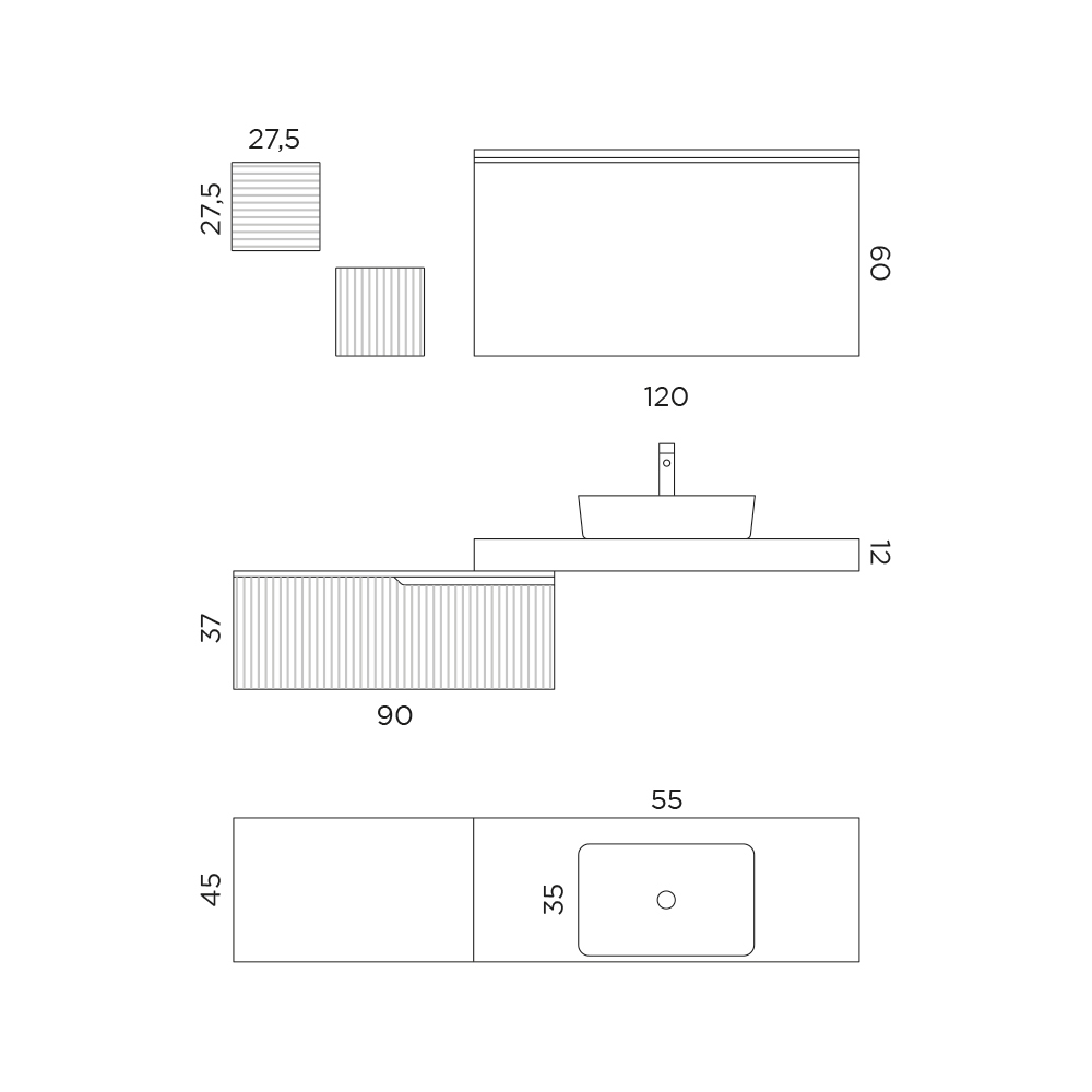 - Umyvadlo: Délka 50 x Hloubka 39 x Výška 13 cm