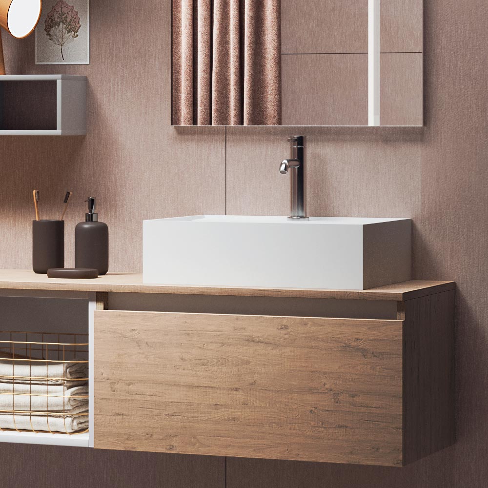 V této kombinaci produktů se spojují rozhodné a čisté linie, které koupelně dodávají vytříbený a elegantní styl. Díky úložnému prostoru a pohodlné zásuvce a materiálům zvoleným pro její konstrukci se nevzdáte funkčnosti a praktičnosti.