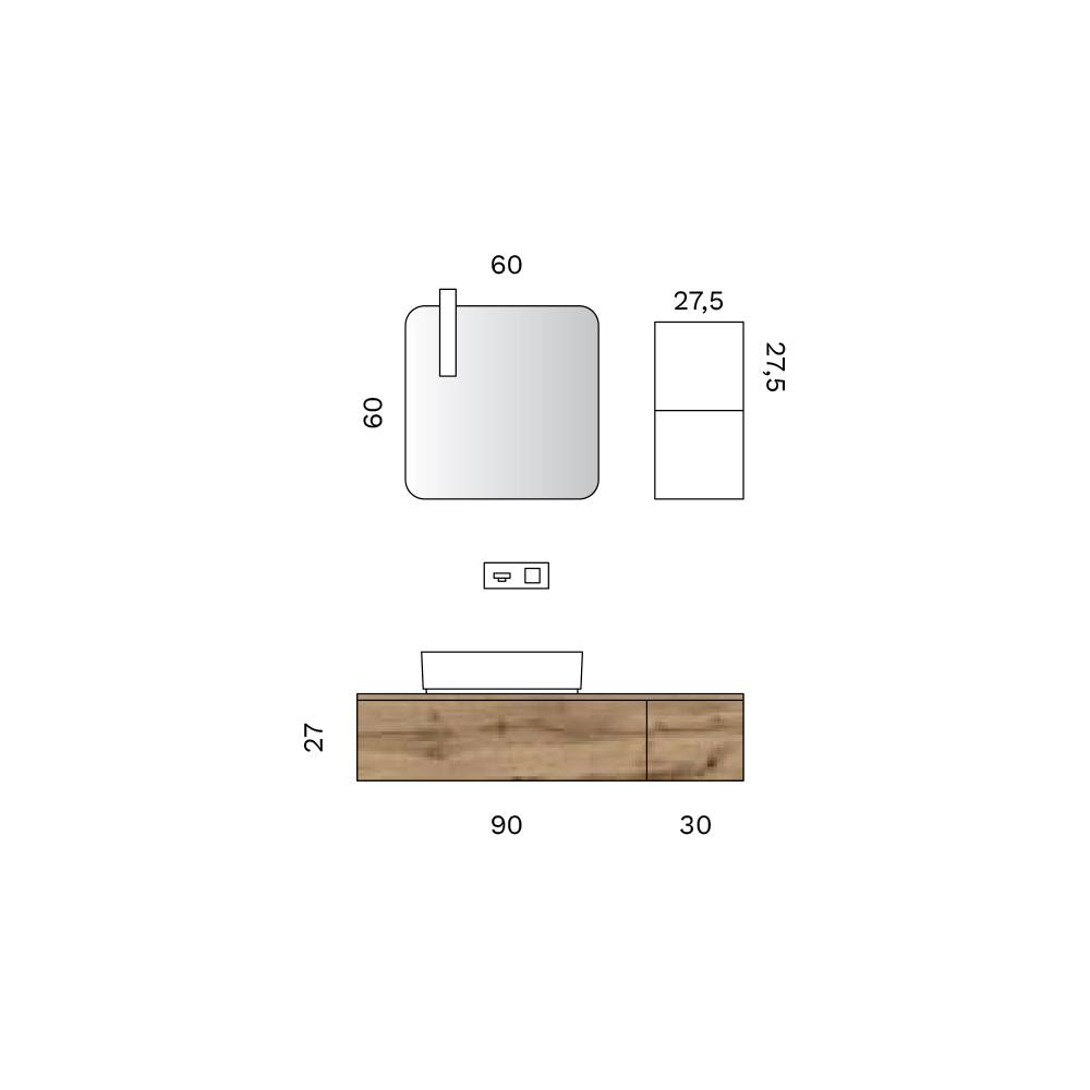 Tato závěsná koupelnová sestava kombinuje moderní design a teplo materiálů a vytváří tak příjemný a elegantní prostor. Dubové povrchové úpravy dodávají prostoru přirozenou a sofistikovanou estetiku, ideální pro moderní a sofistikované koupelny.