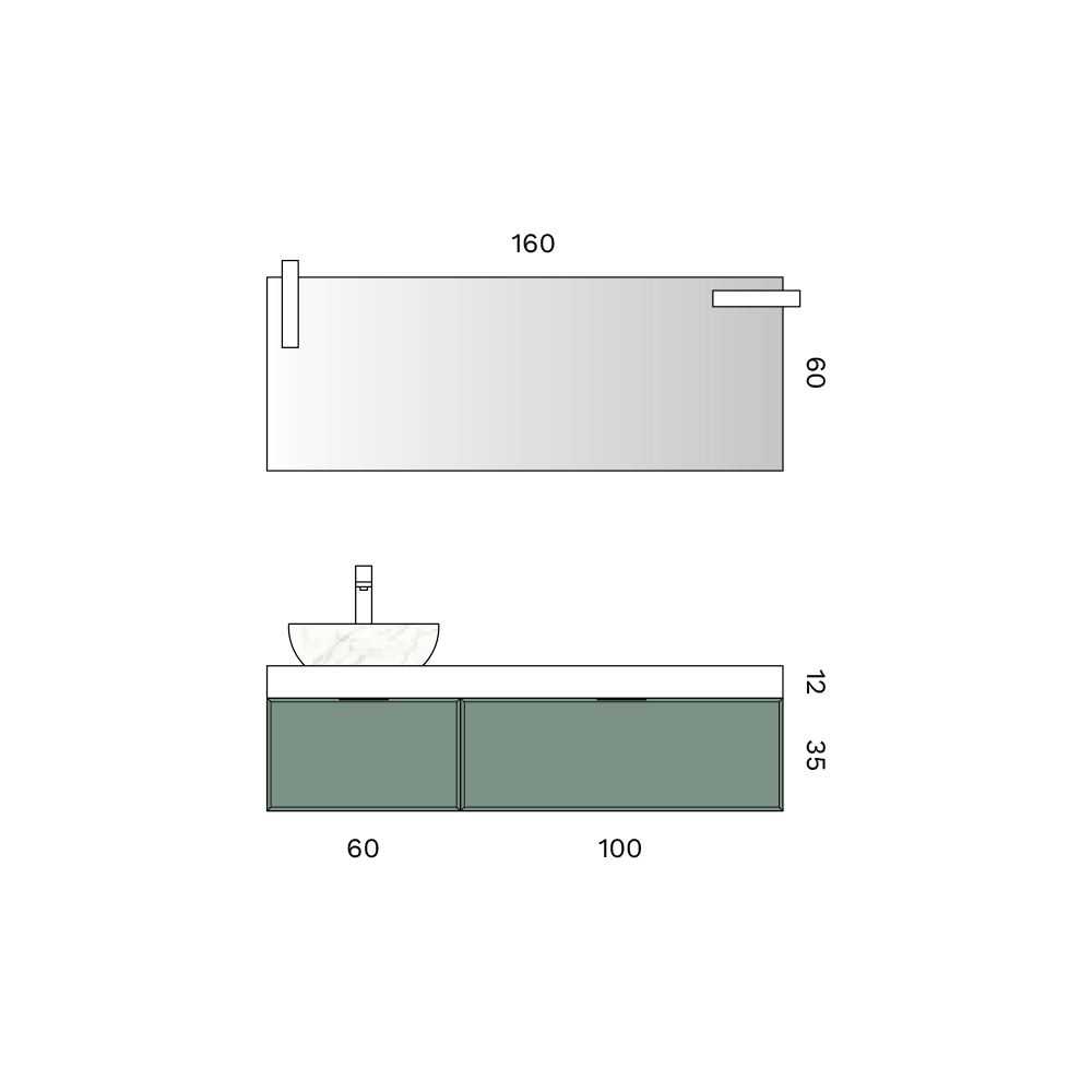 Nástěnná koupelnová skříňka s dvojitými zásuvkami nabízí dostatek úložného prostoru a maximální každodenní funkčnost. Šalvějová povrchová úprava dodává přirozený a sofistikovaný nádech, ideální pro moderní a elegantní koupelny .