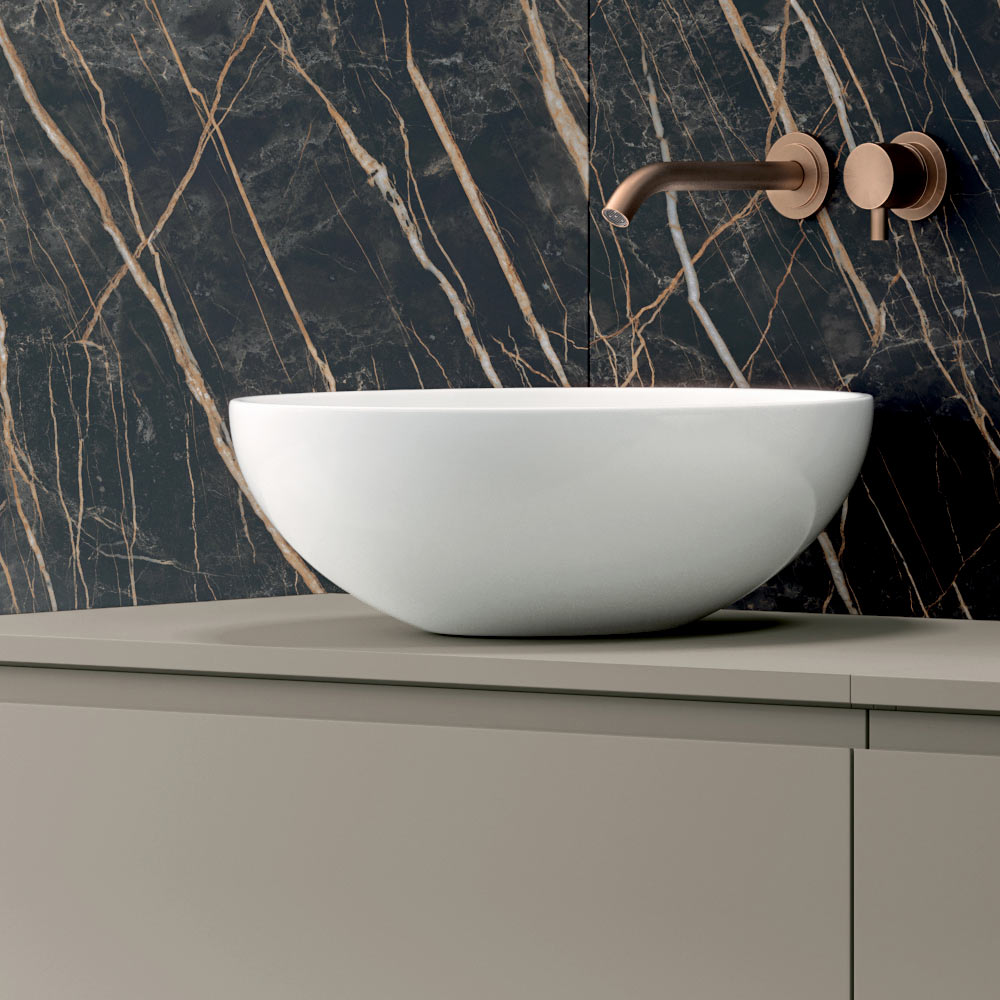 Dva lesklé bílé keramické dřezy na pracovní desku s jednoduchými a harmonickými tvary zajišťují každodenní pohodlí a snadné čištění a zároveň nabízejí silný estetický vzhled. Díky konfiguraci s dvojitým dřezem je tato kompozice ideální do hlavních koupelen nebo sdílených prostor.