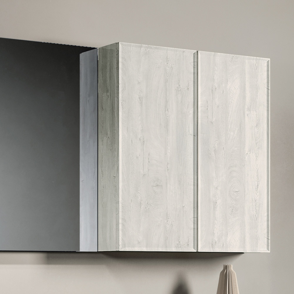 Závěsná koupelnová skříňka z aljašského dubu vyniká svou světlou, přírodní povrchovou úpravou, která zvyšuje jasnost místnosti a dokonale se hodí do moderního, minimalistického prostředí.