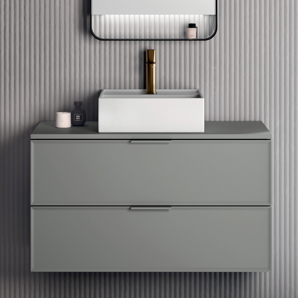 Rafinovaná, moderní koupelnová kompozice s jednoduchým a elegantním charakterem, ideální pro moderní a minimalistické prostory. Matně šedá povrchová úprava dodává pocit střídmosti a všestrannosti a snadno se přizpůsobí různým stylům interiérového designu.