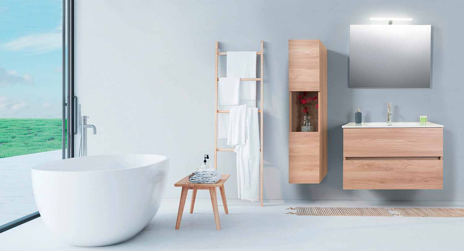 jednoduché a designové složení zavěšeného koupelnového nábytku vyrobeného v Itálii s vysoce kvalitními materiály.