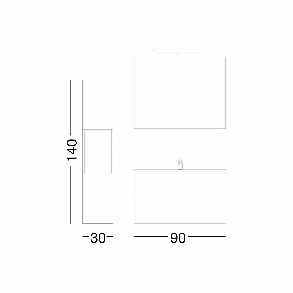 Koupelnová skříňka 90 cm, sloup, zrcadlo a umyvadlo vyrobené v Itálii