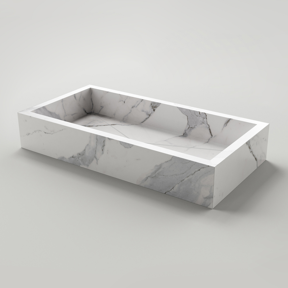 Obdélníkové umyvadlo na desku z porcelánové kameniny Made in Italy.