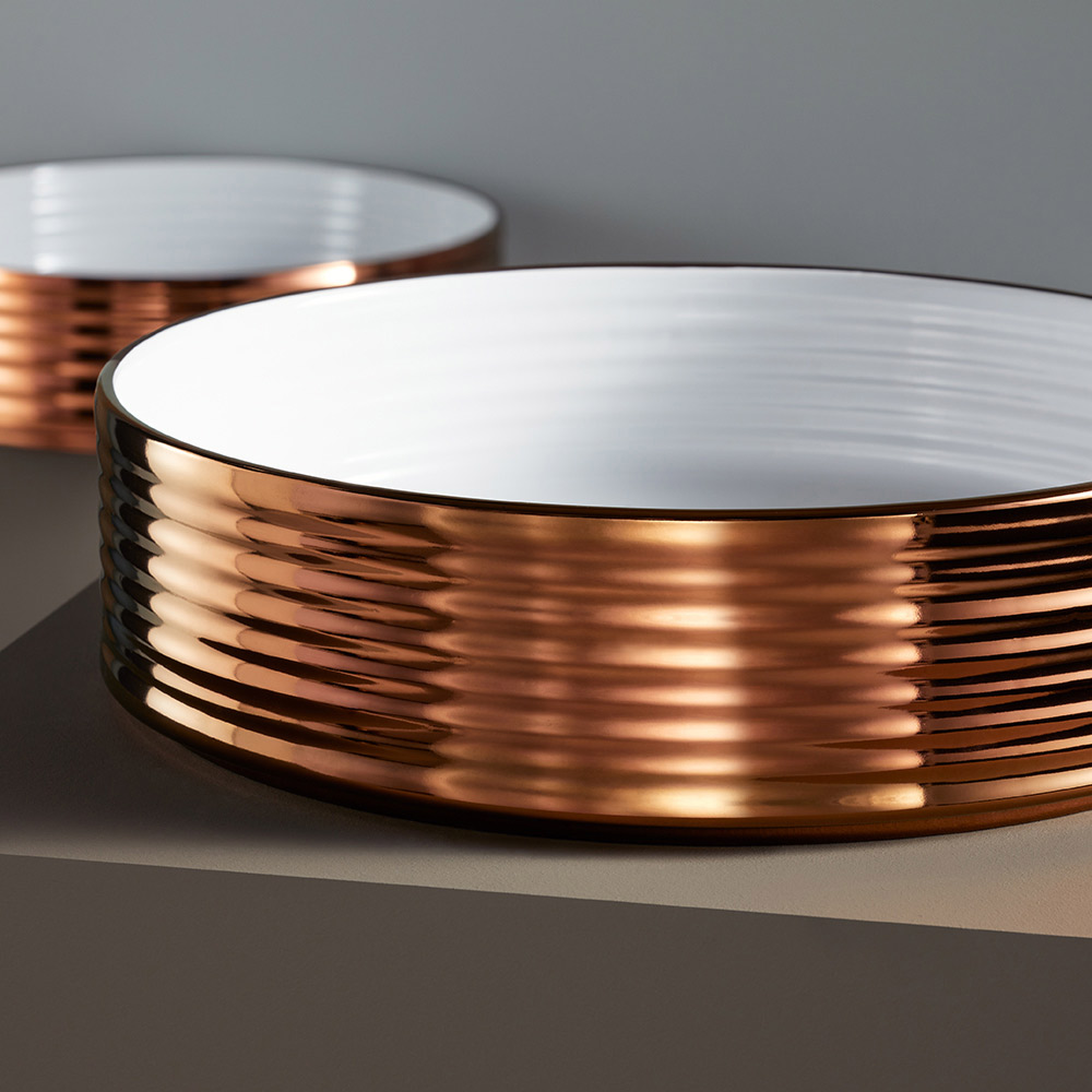 veškerou kvalitu Made in Italy. Dostupné povrchové úpravy:- Interiér a exteriér lesklý bílý smalt, leštěný měděný okraj
