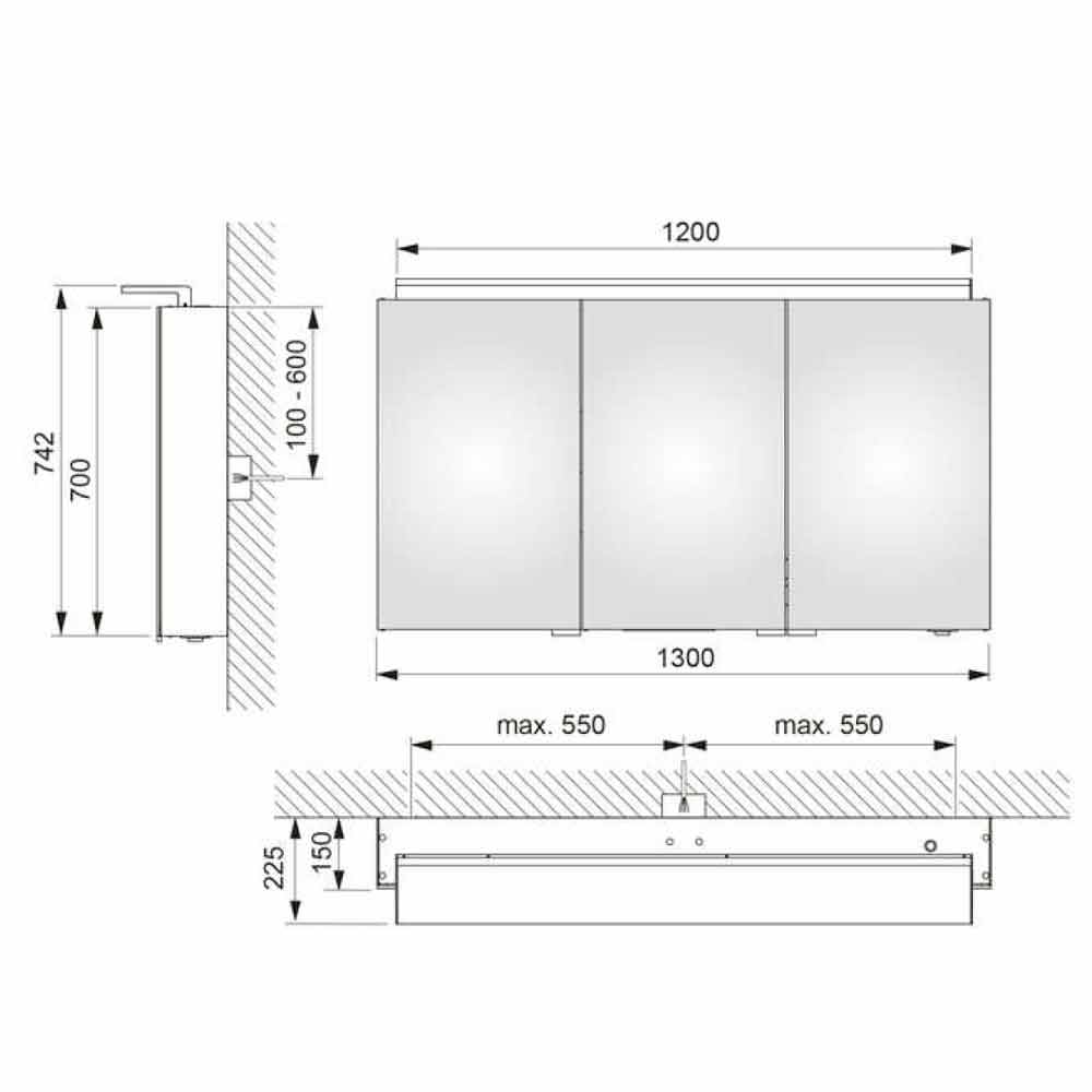 Kontejnerové zrcátko se 3 zrcadlovými sklopnými dveřmi (také vnitřní) a bočními zrcátky s LED osvětlením.