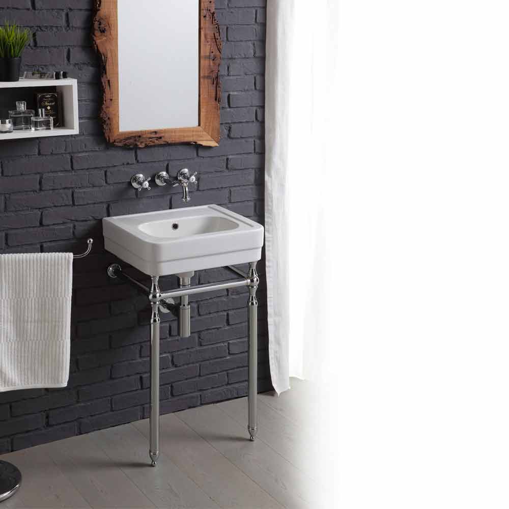 - Chromovaná kovová základna Šířka. 41 cm x Výčnělek stěny 34 cm x V: 76 cm
