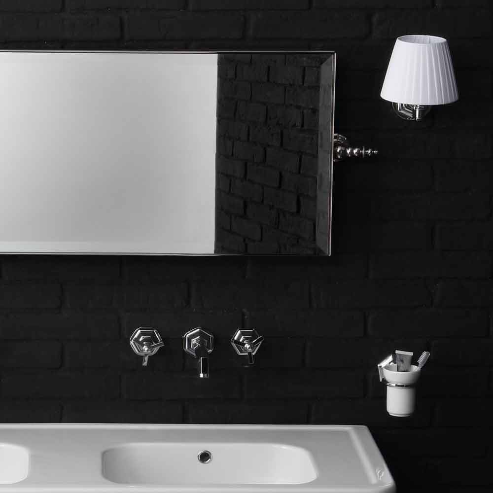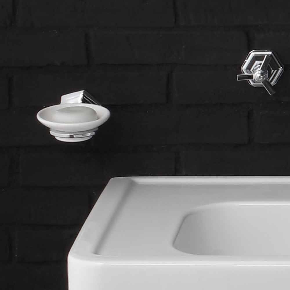 Serenity dotváří a obohacuje přítomnost krásného a elegantního keramického držáku na mýdlo na zeď s chromovanými detaily a držáku na zubní kartáčky ve stejném designu, to vše doplněno dvěma nádhernými luxusními aplikacemi v chromované mosazi a bavlněném stínidlu.