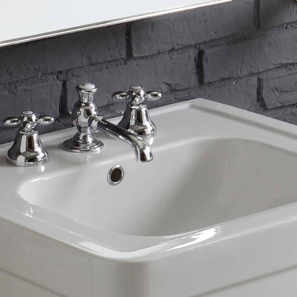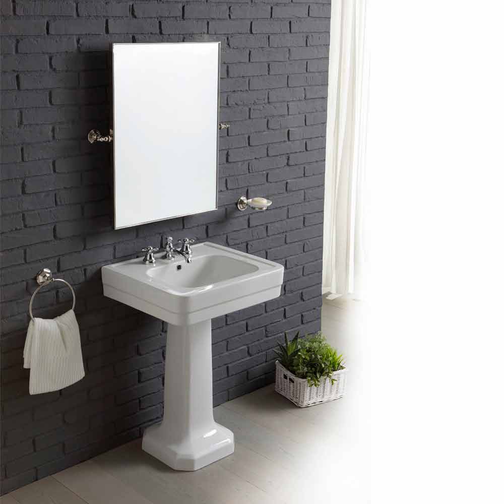 Tato krásná kompozice zahrnuje krásné a prostorné umyvadlo připevněné ke zdi a spočívající na sloupku, také z keramiky, vše vyrobené z elegantně čtvercového tvaru.