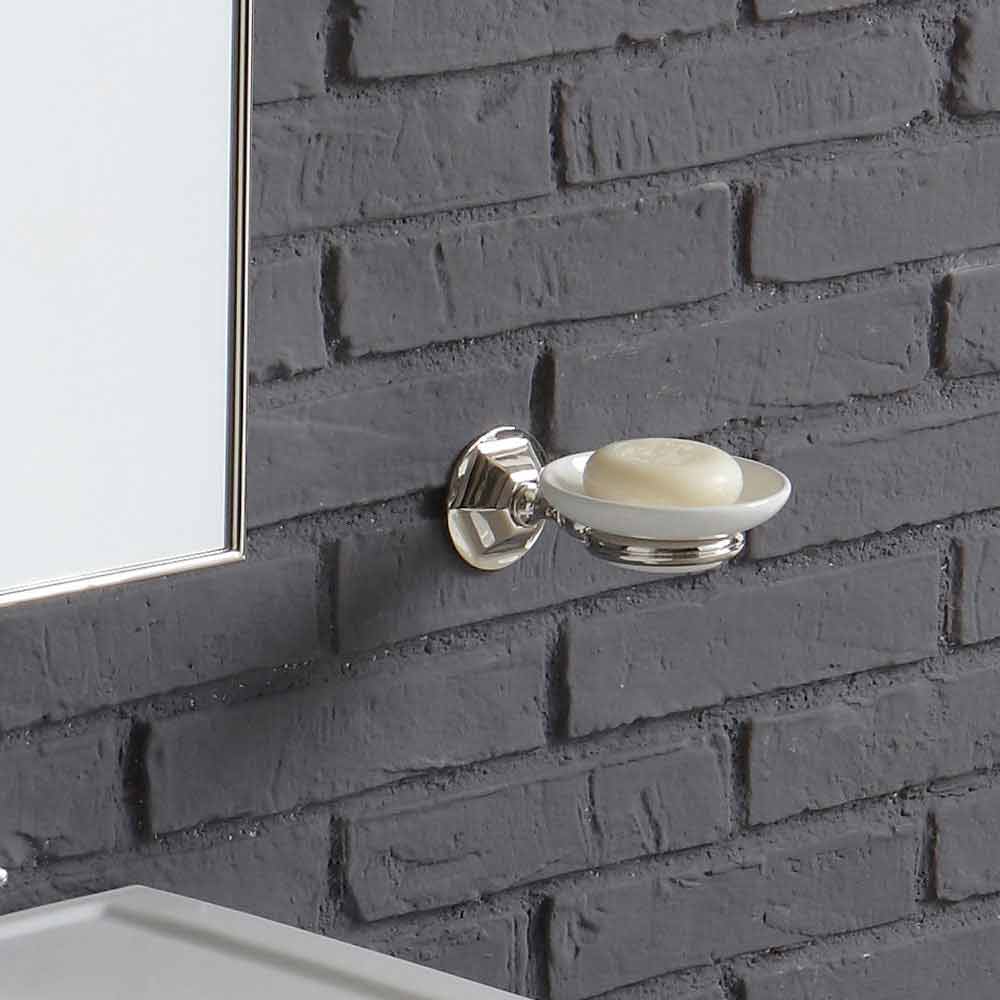 Anii dotváří a obohacuje přítomnost krásného a elegantního keramického držáku na mýdlo na zeď s chromovanými detaily a držáku na ručník s kreativním a originálním designem prstenu, rovněž v chromovaném provedení.