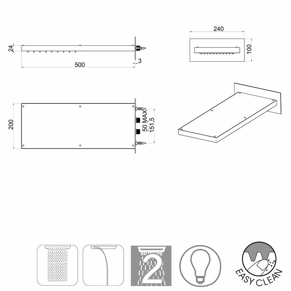 Bossini Manhattan sprchová hlavice z nerezové oceli s dvěma tryskami
