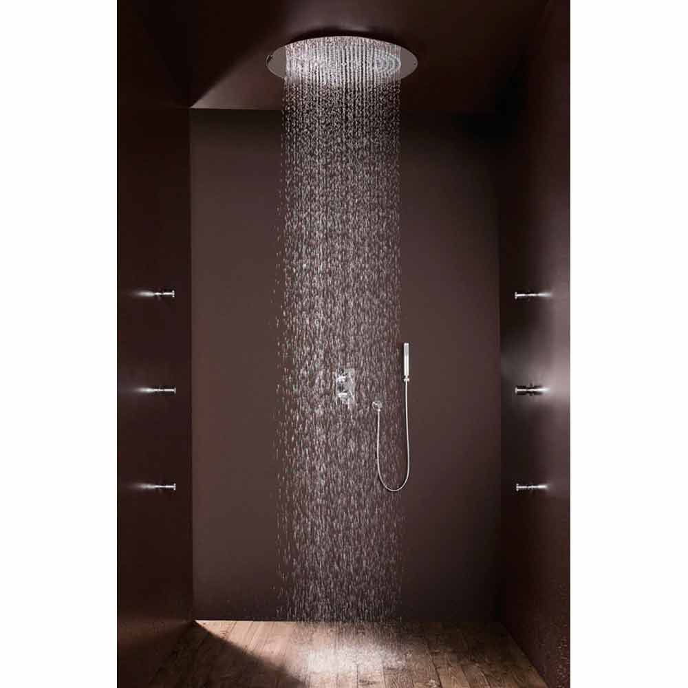 Dream Oki Plochá sprchová hlavice Ø 370 mm, s LED světly, nízkonapěťovým transformátorem, ovládací klávesnicí a flexibilním přívodem vody.