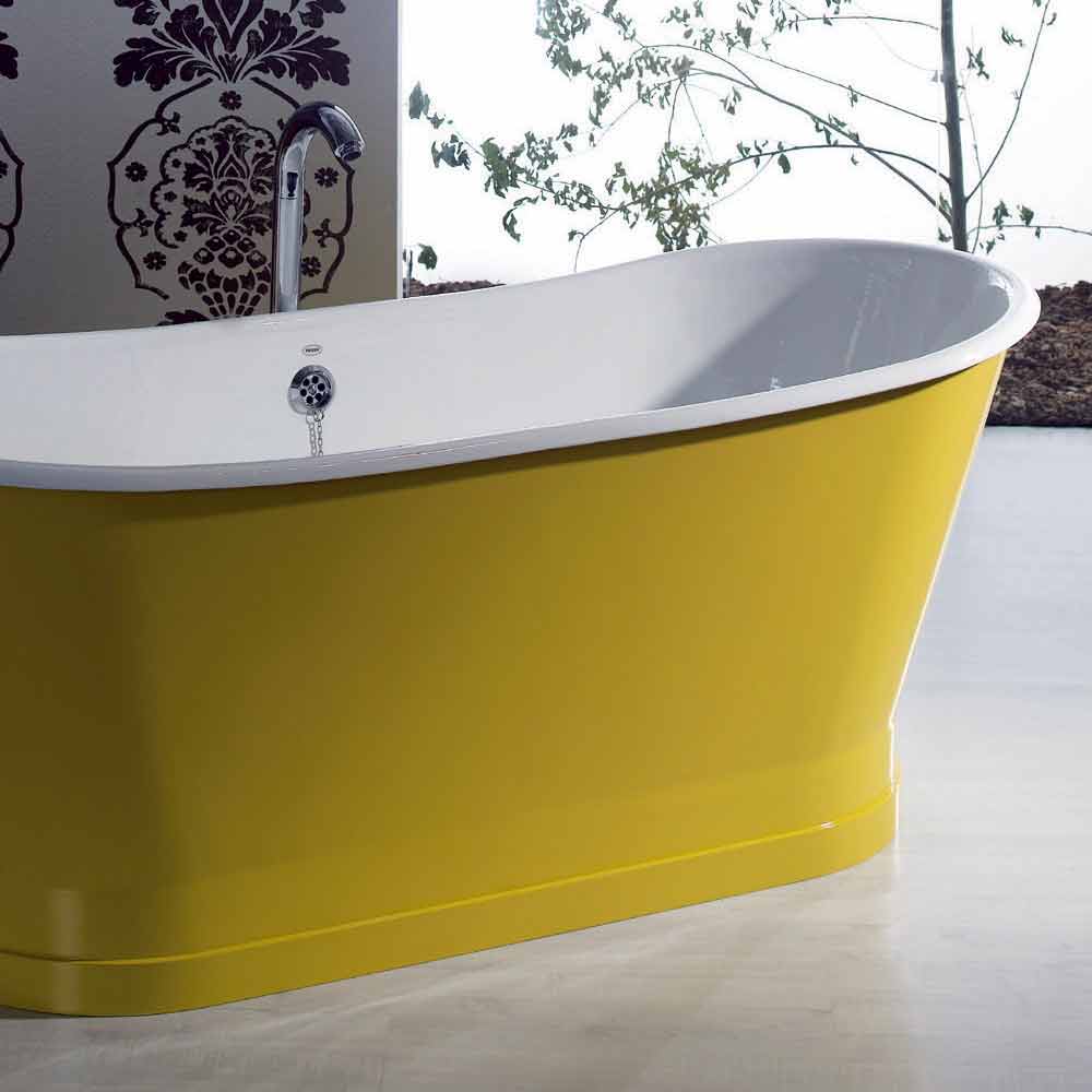 Volně stojící vana celá z litiny spočívající na zemi. Vnitřní 2 mm titanový smaltovaný povrch a vnější lakovaný povrch v různých barvách. Vana, která představuje vrchol luxusu!