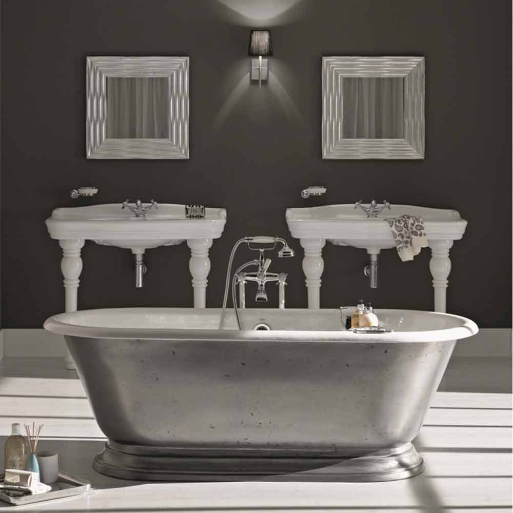 Volně stojící vana zcela vyrobená z litiny spočívající na zemi. Vnitřní 2 mm titanem smaltovaný povrch a externě potažený leštěnou litinou. Vana, která představuje vrchol luxusu!