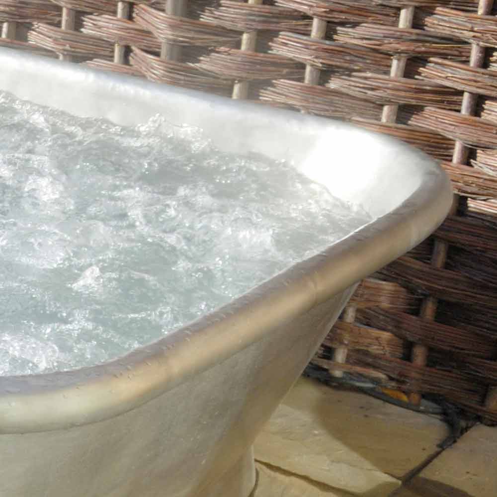 Volně stojící vana z mědi pokrytá bílým železem