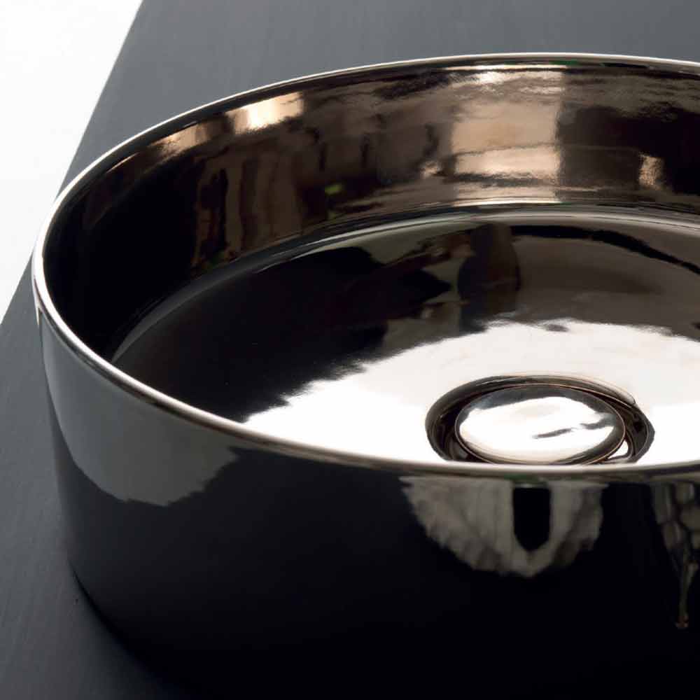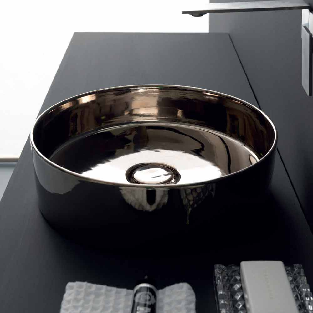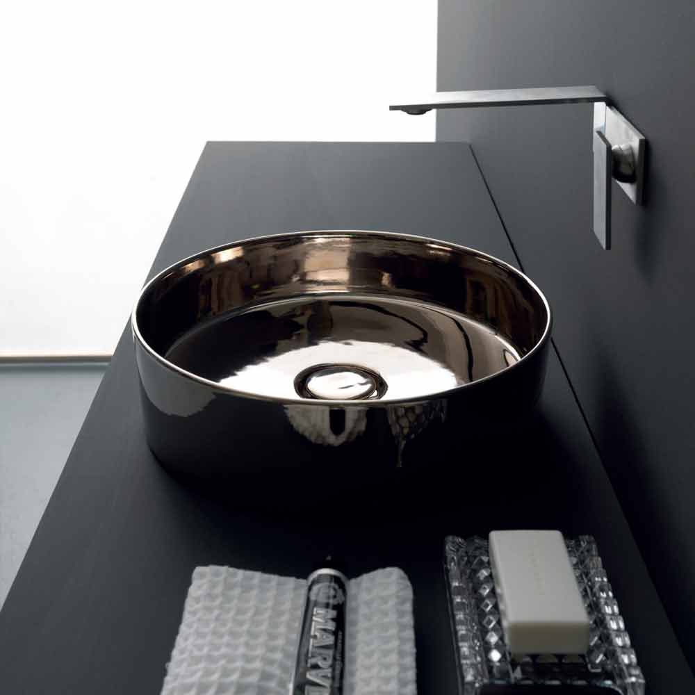 Kulaté umyvadlo na desku z barevné keramiky vyrobené v Itálii