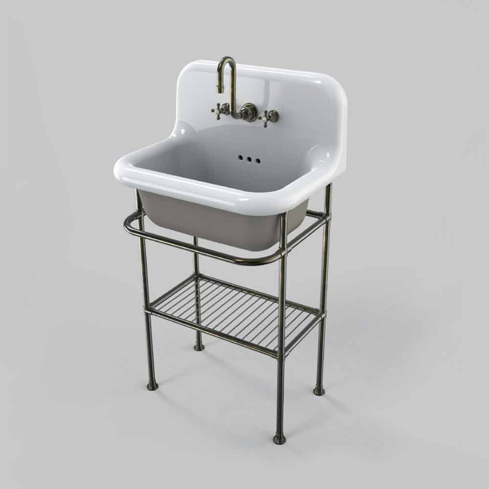Tom je krásné nástěnné umyvadlo, obdélníkového tvaru, s vintage a originálním designem obohaceným o krásnou kovovou konstrukci s mřížkou.