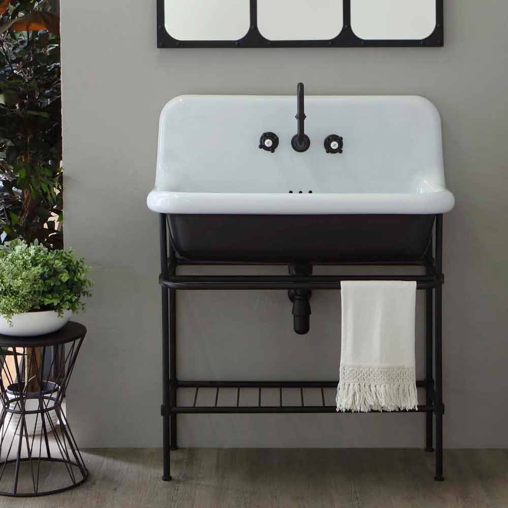Taylor je krásné nástěnné umyvadlo, obdélníkového tvaru, s vintage a originálním designem obohaceným o krásnou kovovou konstrukci s mřížkou.