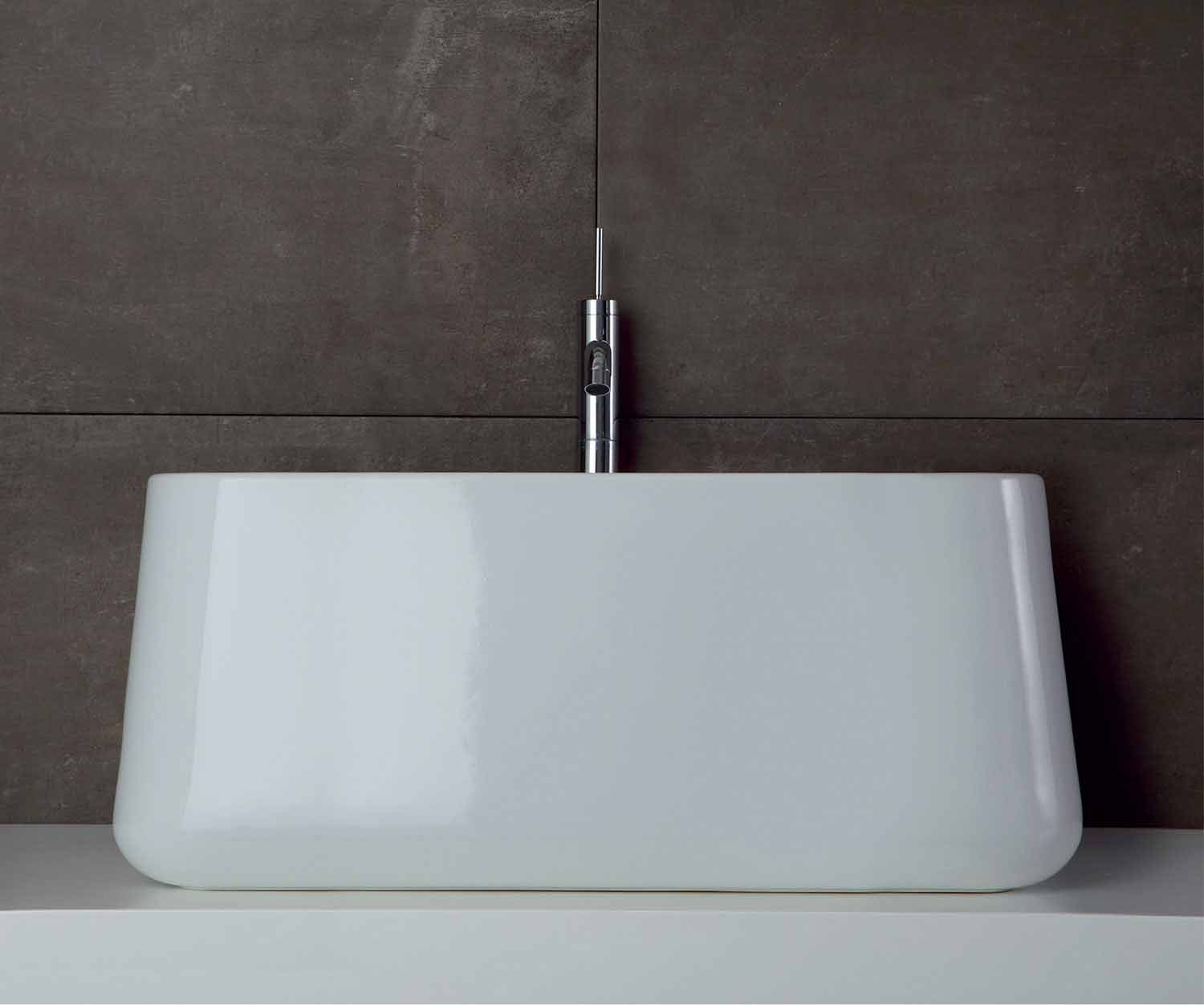 Umyvadlo Oliena lze použít jako podpěru, nebo připevnit ke zdi . Je možné přizpůsobit jeho barvu, vybrat si z nabízených, aby se dokonale přizpůsobily kontextu, ve kterém je vložena.