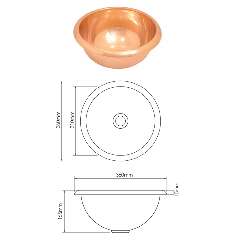 Kulaté umyvadlo na desku z mědi, ručně vyráběné, Alba