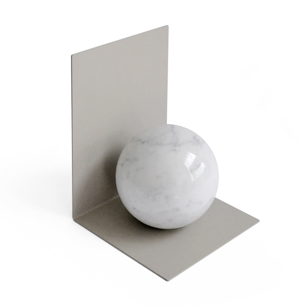Tato mramorová zarážka na knihy je dokonalou syntézou mezi funkčností a moderním sochařstvím . Design je odvážně minimalistický, kde se mramorová koule setkává s kovovou deskou a vytváří vizuální kontrast, který je opravdovou lahůdkou pro oči.