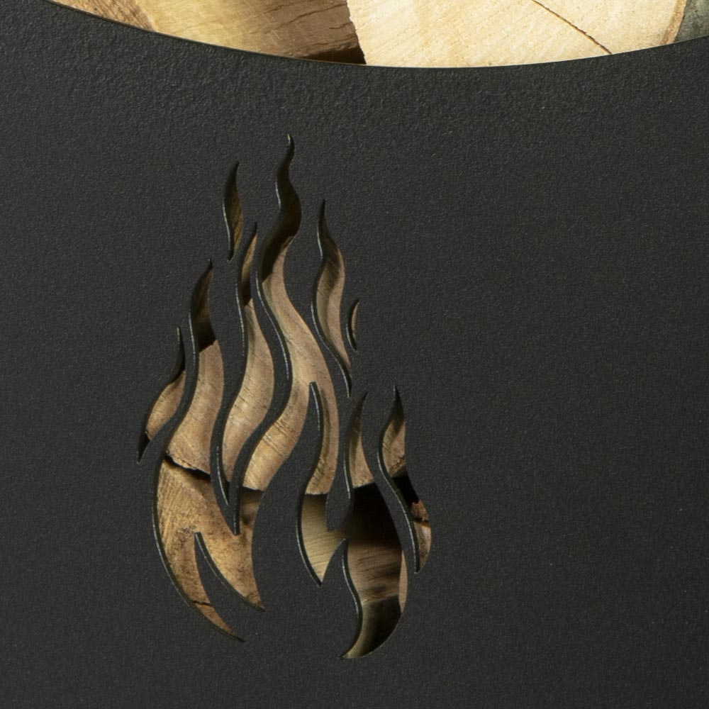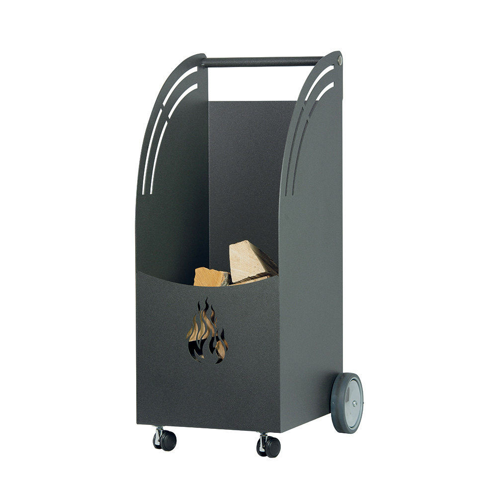 Robustní kovová konstrukce zaručuje odolnost a stabilitu , zatímco odolná a snadno ovladatelná kolečka vám umožní snadno přemístit vozík kdekoli v domě, od skladu dřeva až po krb. Plamen řezaný na přední straně je nejen dekorativním detailem, který navozuje teplo a pohodu ohně, ale slouží také k větrání a udržování suchého dřeva.