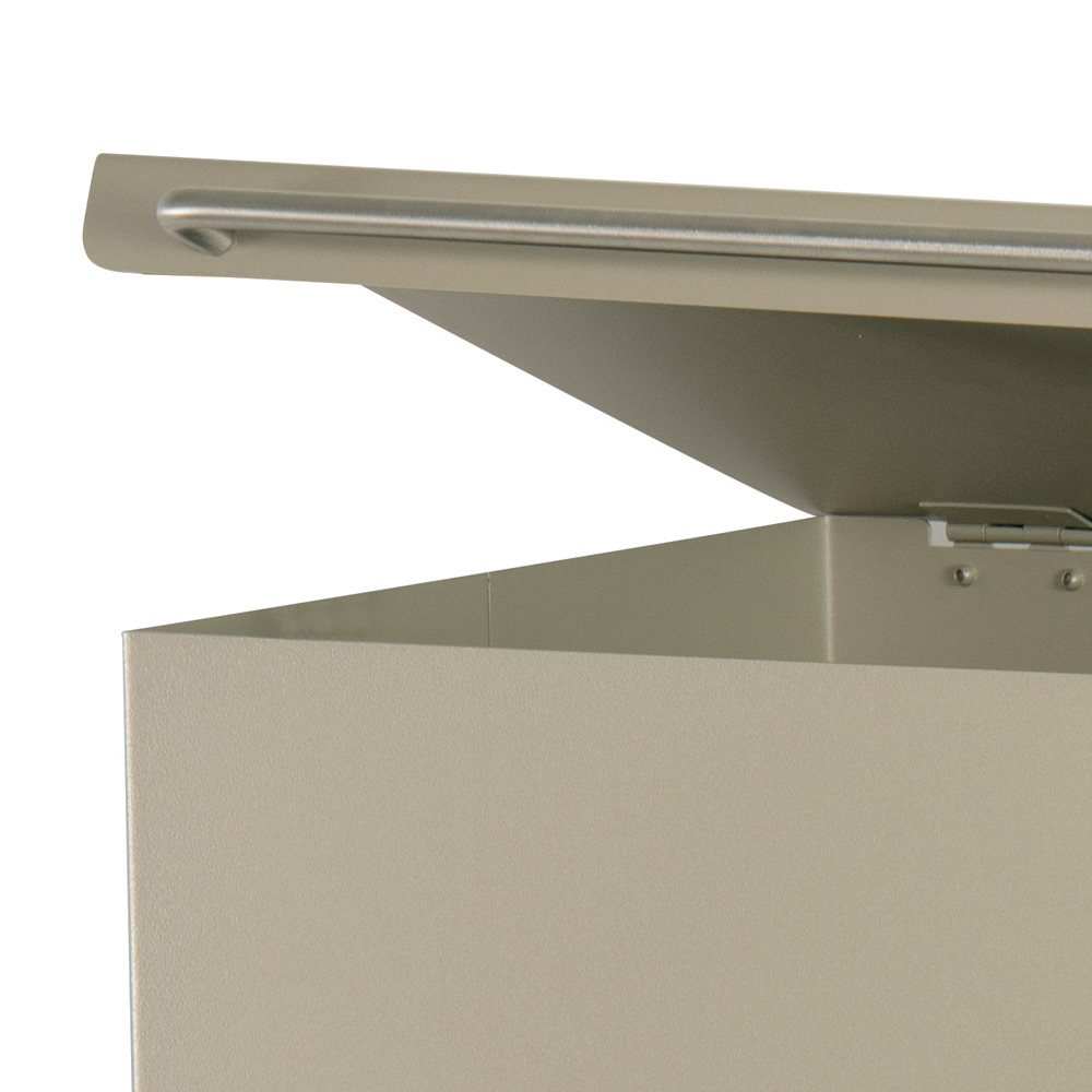 Horní víko v kombinaci se štíhlou rukojetí zajišťuje snadný přístup k obsahu a ochranu před prachem. Malý průzor na přední straně nádoby nejen dodává zajímavý vizuální akcent, ale také vám umožňuje sledovat hladinu pelet, což zajišťuje, že vám nikdy nedojde palivo.