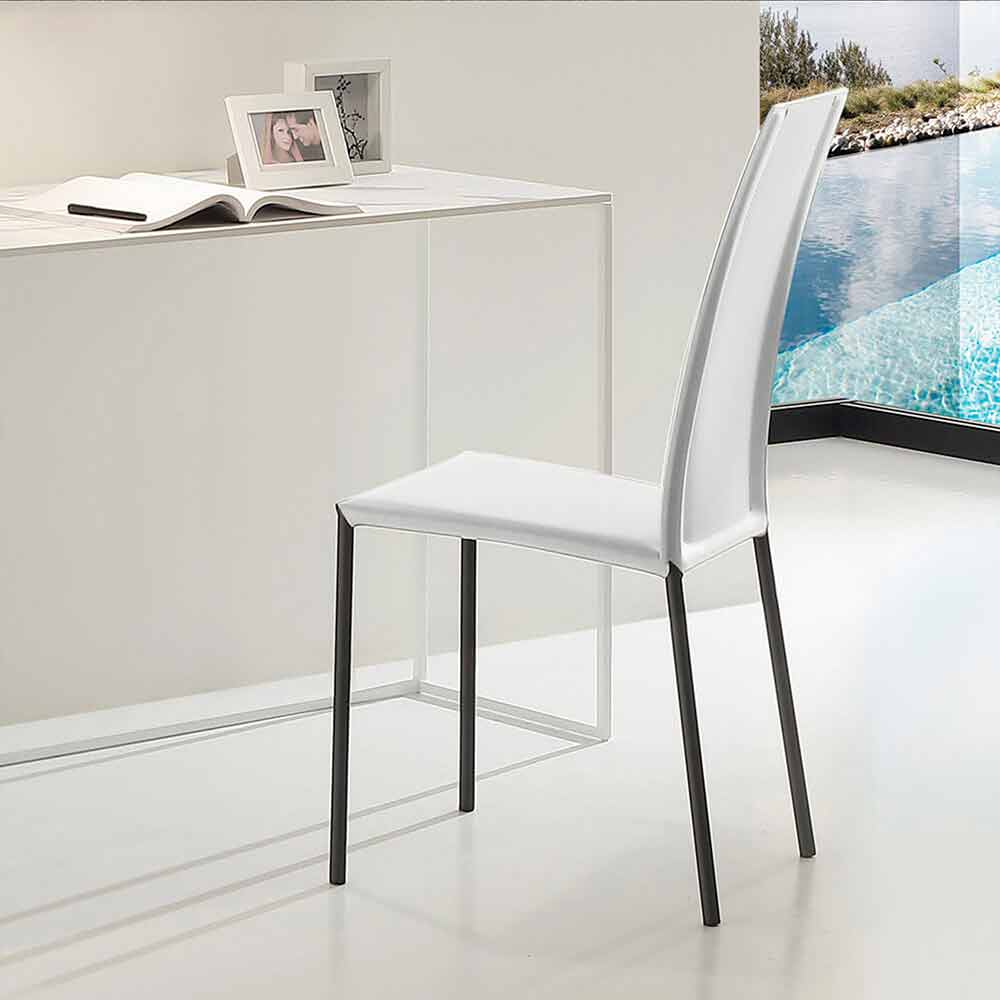 Doplněk s jednoduchým a zásadním designem obohacený a dotvořený nádhernou kombinací dotyku třídy krytiny s nespornou moderností lakovaného kovu. Vysoká opěradlo dává židli podlouhlý tvar a obohacuje ji o téměř královskou estetiku, a to i díky nádechu elegance a vytříbenosti dané nádhernou strukturou kůže, vzácným a vysoce kvalitním materiálem. Četné barvy dostupné spolu s podstatou jeho tvarů z něj také dělají obzvláště všestranné řešení vybavení schopné vytvořit dokonalou harmonii s okolními prvky a charakterizovat tak prostředí.